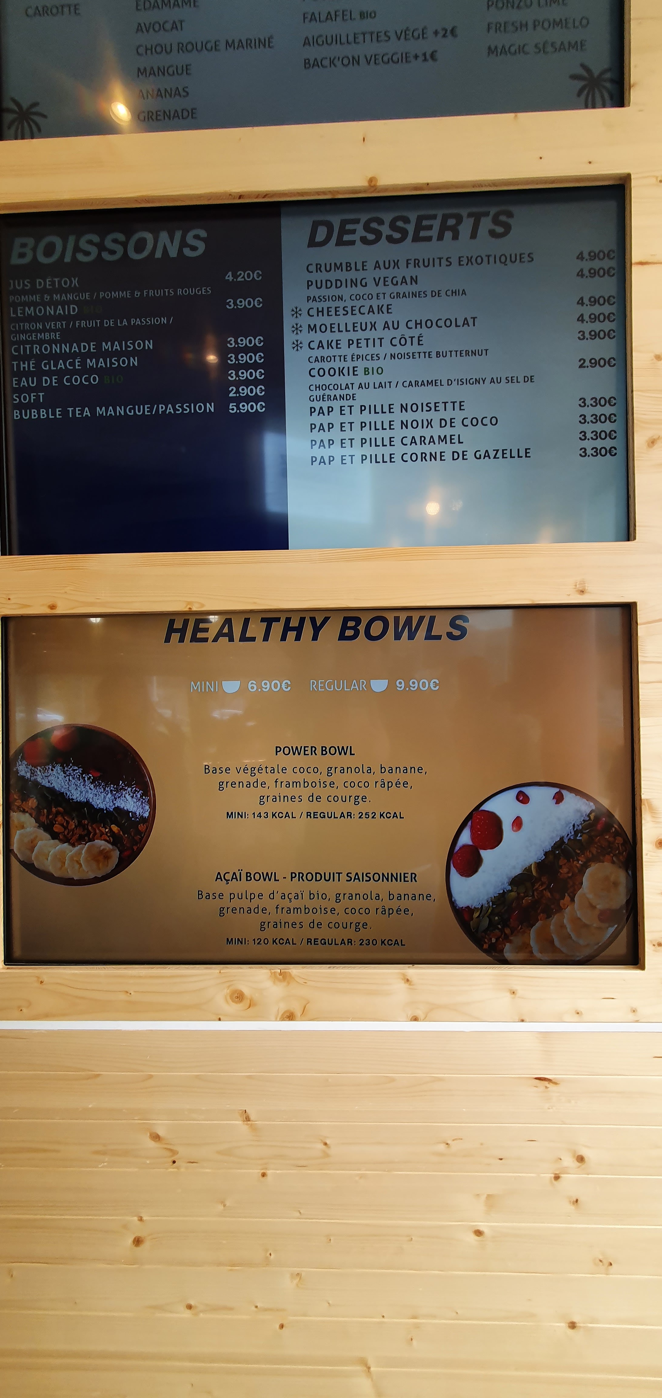 J 'étais passée devant en coup de vent Et cela m'avait donné envie d'essayer ! Deco sympa et personnel souriant ( et ça fait du bien ) J'ai pris un petit format de bowl et j'ai regretté car on s'est régalés mon fils et moi ! Du coup j'y retournerai volontiers pour goûter d'autres mélanges A très vite