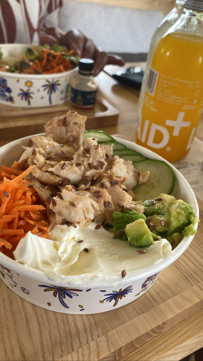 Super concept ! Ça change des fast-food Présentation des plats détaillée (quantité kcal etc), possibilité d'ajuster la taille des bowl, service rapide