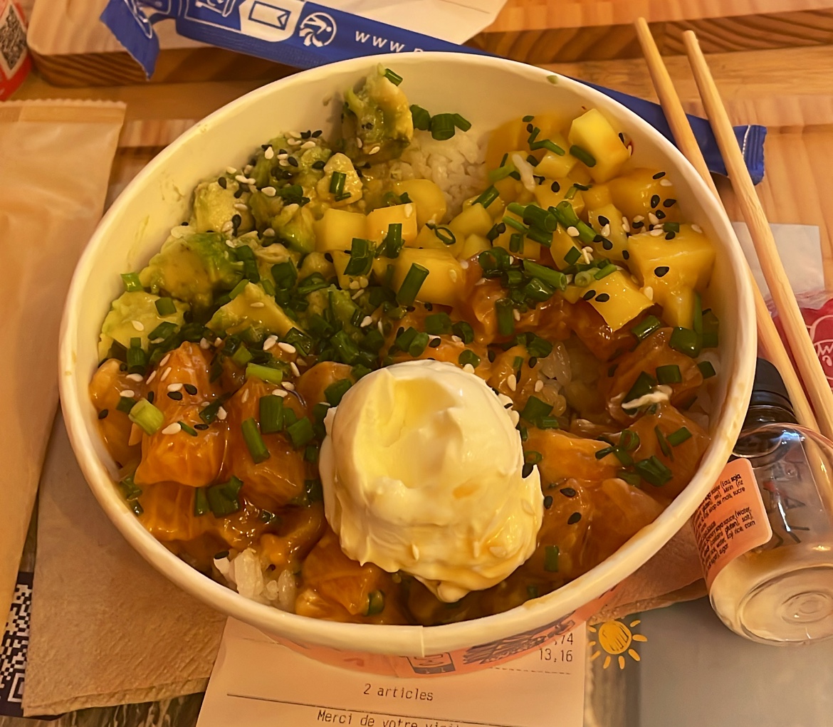 Déçue encore une fois alors obligée de laisser un commentaire. Les économies sur les protéines commencent à se voir fortement, même quand on rajoute un supplément payant, voir 4 morceaux de saumon/thon qui se battent en duel sur une pile de riz pour un poké dit « super protéiné » ça fait mal. La qualité des aliments et là mais rien que pour ça la prochaine fois j’irai chez l’enseigne à côté qui fais sushi + poké qui a la décence de remplir correctement ses bols de saumon.