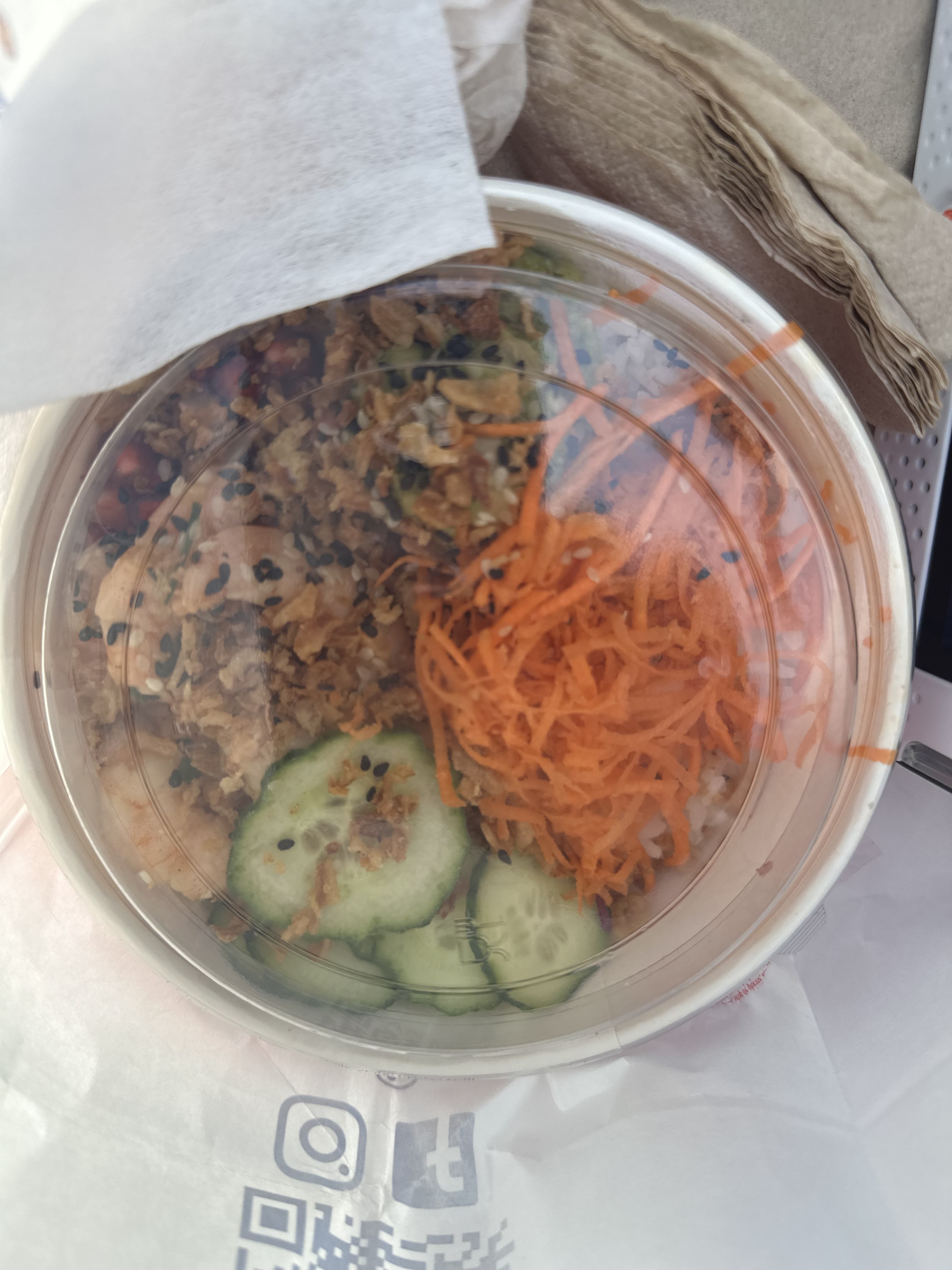 Un peu déçu sur la fraîcheur des produits,avocats noir ,carotte râpée limite,le riz n'est pas gluant mais Al dente... dommage c'est des petits détails mais pour un poke fait a la minute tout doit être nickel ....