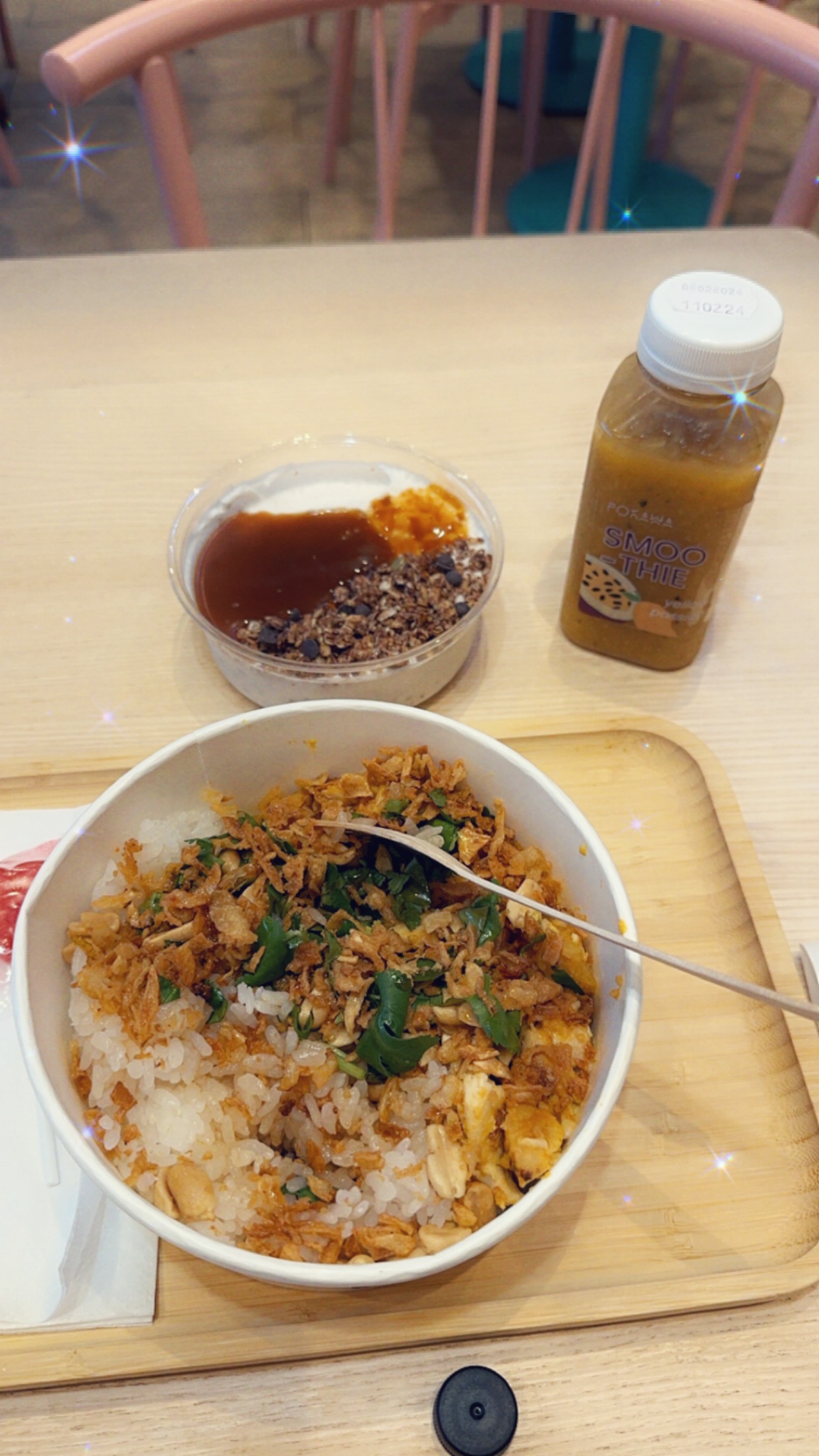 La vendeuse était trop gentille elle m’a conseillée et le service était rapide. Le bubble tea, d’après moi n’en ai pas un il n’y a pas de billes et c’est très peu sucré. Le plat à base de riz était bon et ma calé