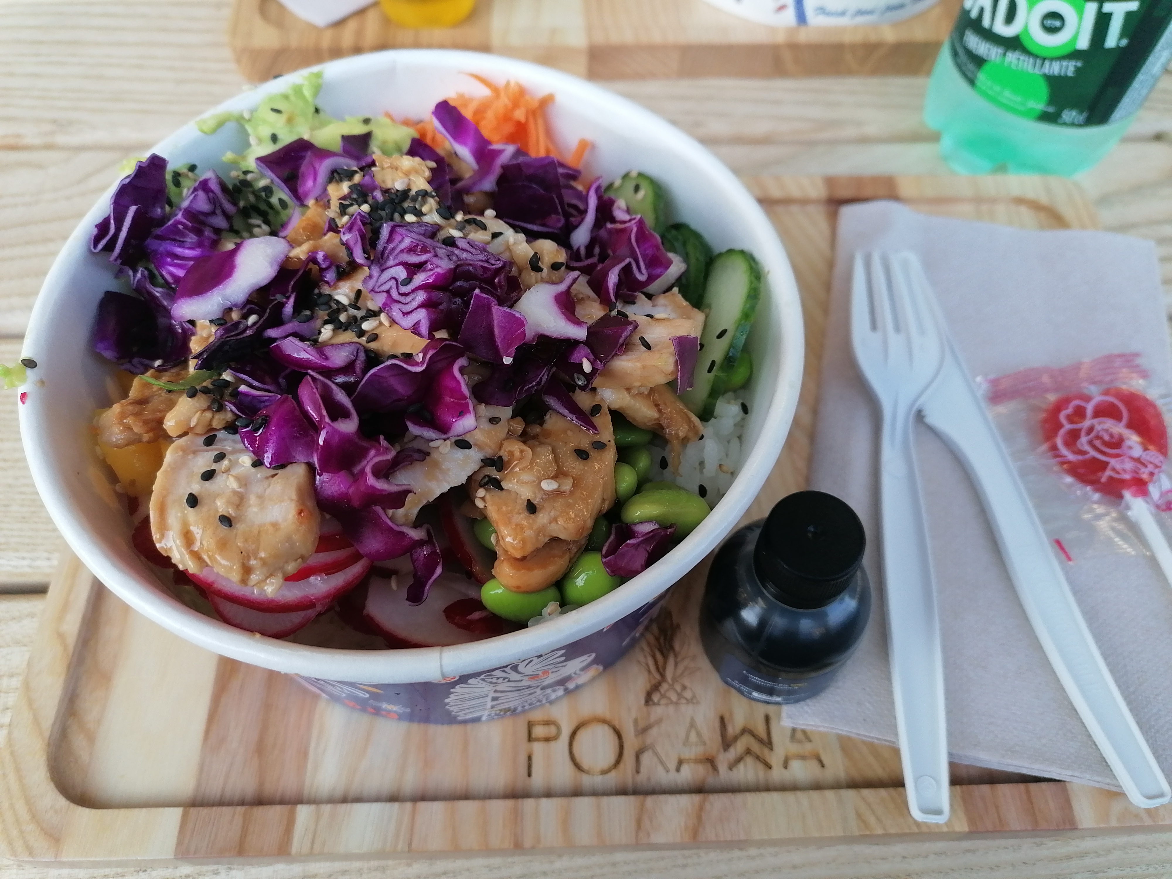 Nous avons testé aujourd’hui pour la première fois Pokawa et ce fut un succès, nous avons commandé sur le site pour deux repas à emporter, en arrivant c’était pratiquement prêt, le personnel agréable, et c’était surtout très bon 😋 c’était bien garnis et de qualité, une nourriture saine pour un tarif très correct 👌 une jolie attention: un petit mot dans le sachet et des sucettes 😉 nous reviendrons ça c’est sûr
