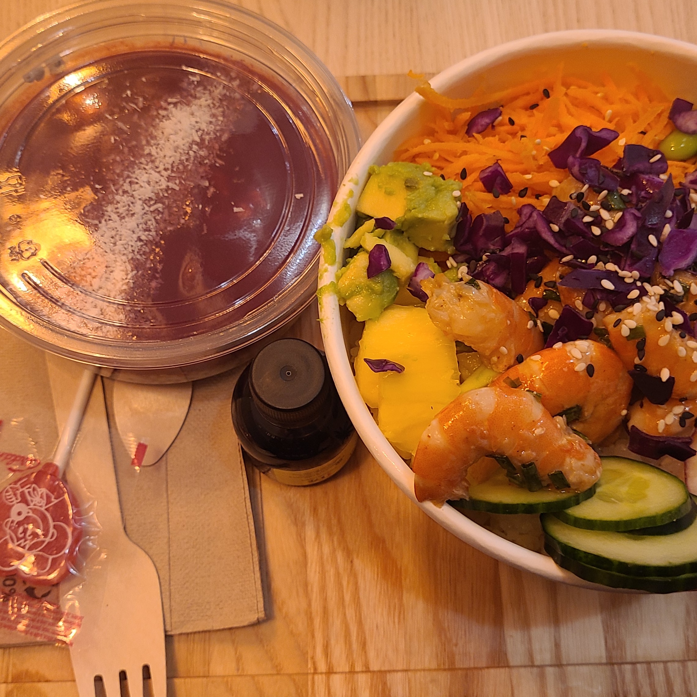 De passage à Nancy et pourtant réfractaire aux poke bowl généralement vendus à prix d'or pour un bol de riz collant.... Je dois dire que j'ai été tellement conquise que j'y suis allée 2 jours de suite. Les goûts sont là, la fraîcheur aussi, et ils sont bien garnis. Et pas secs. Le riz noir est un vrai plus. Je me suis régalée. Seul bémol, le second jour j'ai testé le grand bowl et par rapport au médium il y a juste plus de riz (mais pas plus de quantité d'ingrédients). Donc mieux vaut prendre le médium avec 1 ou 2 suppléments 😉 En tous cas je recommande mais je ne retenterai pas ailleurs pour autant car ils sont vraiment meilleurs que tous ceux goûtés ailleurs.