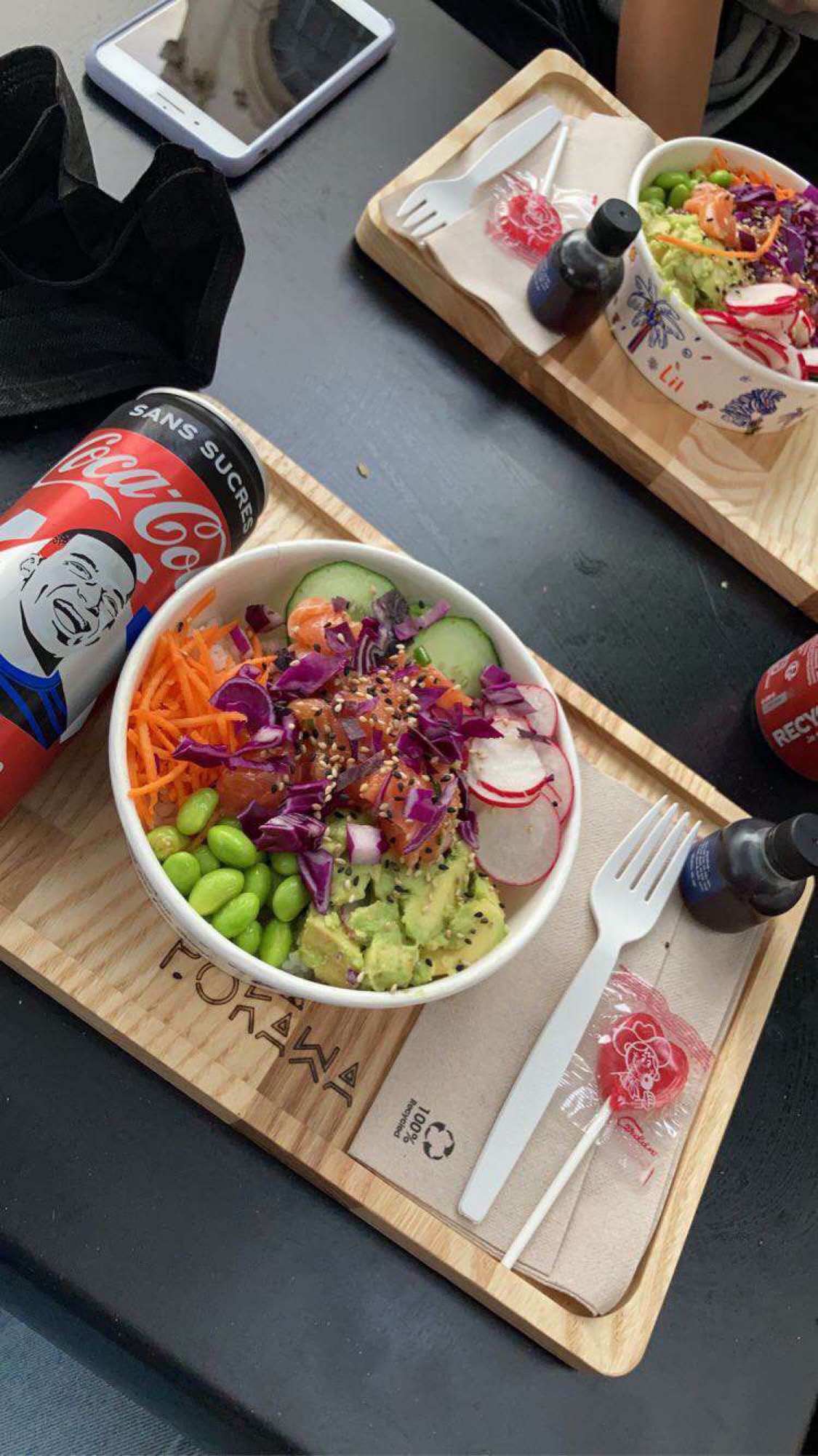 Poké commandé sur Uber Eats. Très bon mais belle arnaque dans la quantité. Le bowl est deux fois plus petit que ceux achetés sur place. Et en prime de ça il n’y avait pas d’avocat alors que je l’avais bien commandé.