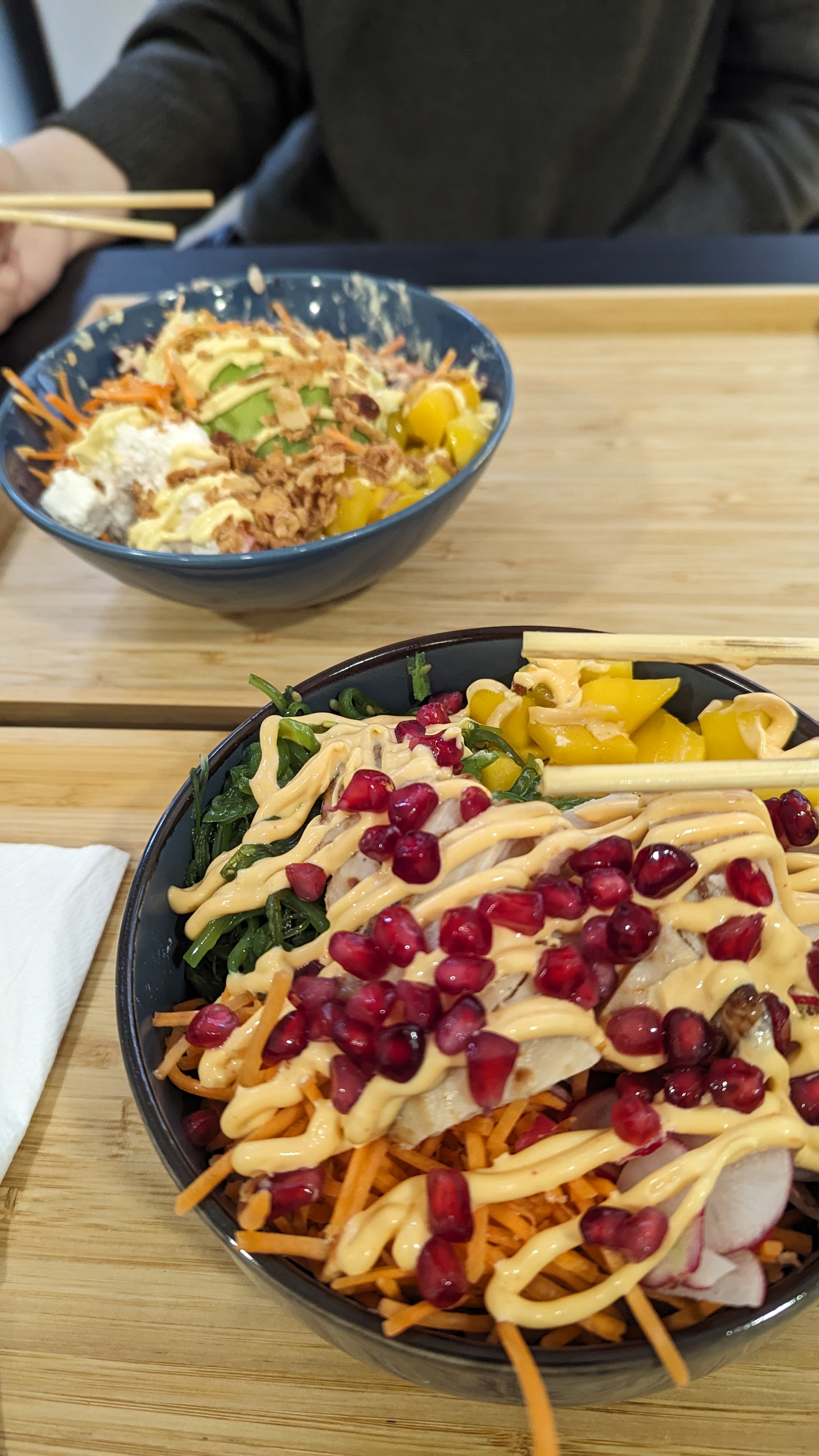 Excellents poke bowls ! J'adore la variété des ingrédients frais et de qualité utilisés. Le service est également excellent. Je recommande vivement !