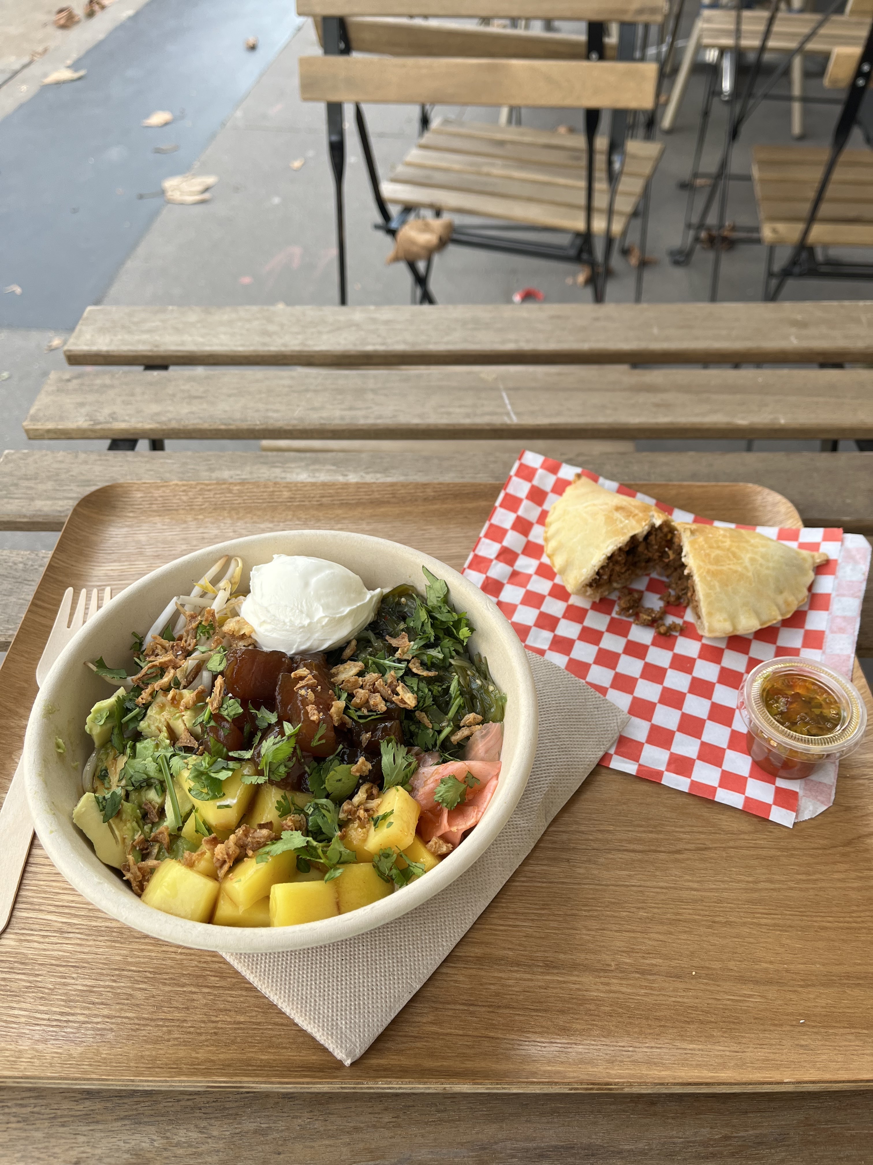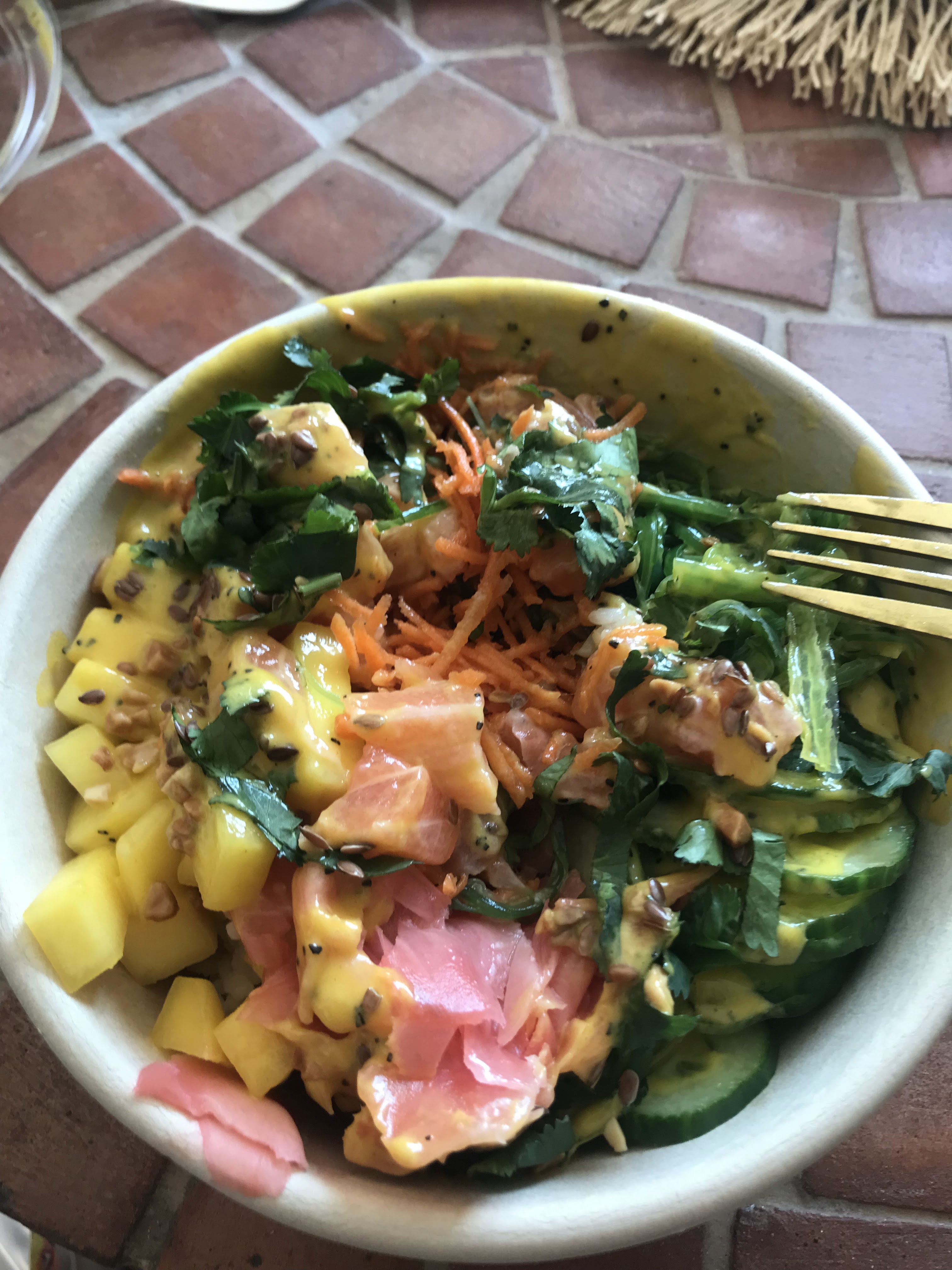 J'ai pris un poke bowl aux crevettes à l'importé et un dessert au chia et à la mangue, c'était plutôt bon !