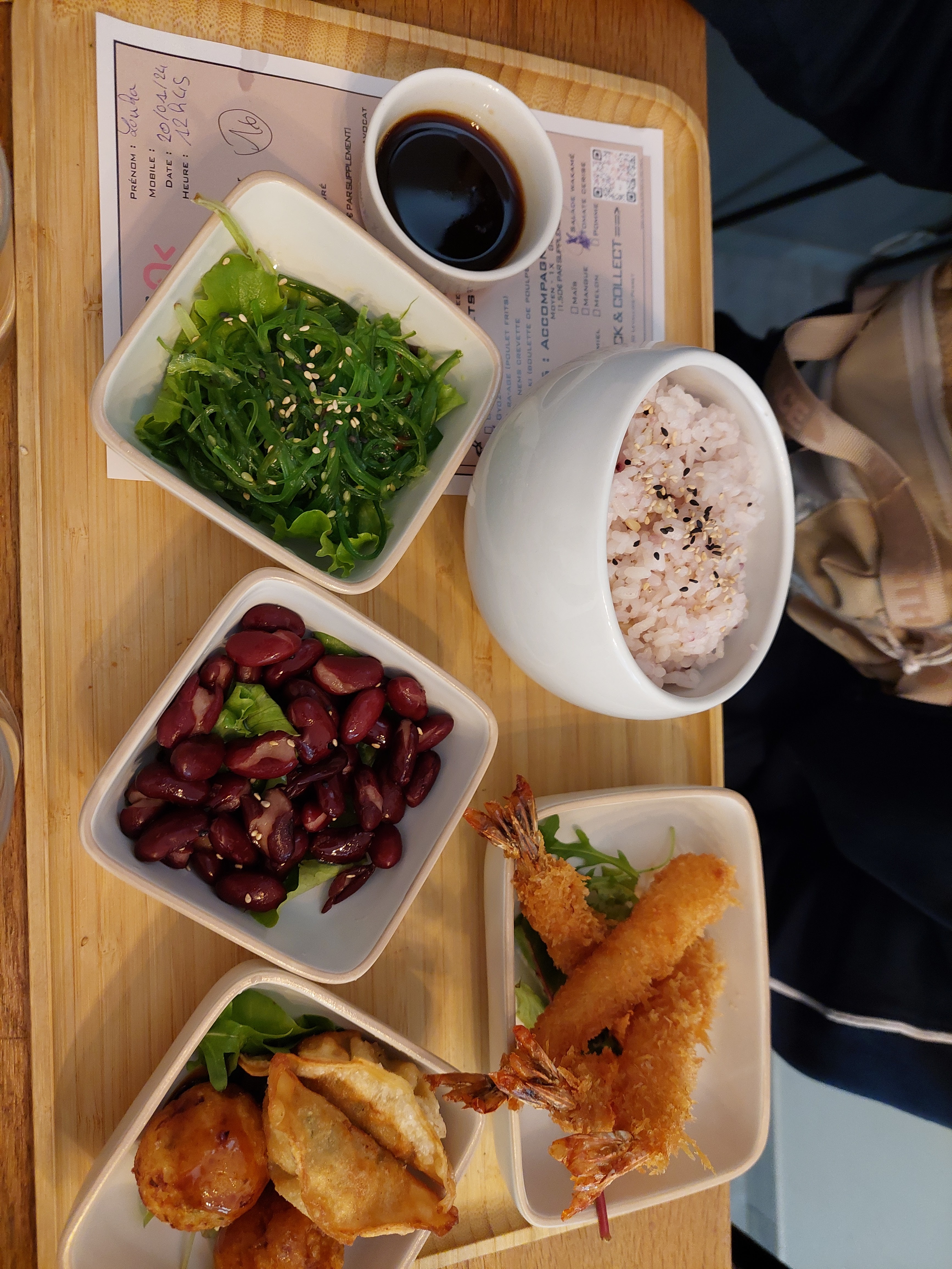 Très bon et léger mais ils ont oublié 2 fois les gyozas légumes (la protéine végétarienne) et je me suis rendu compte une fois loin. Bien regarder avant de partir !