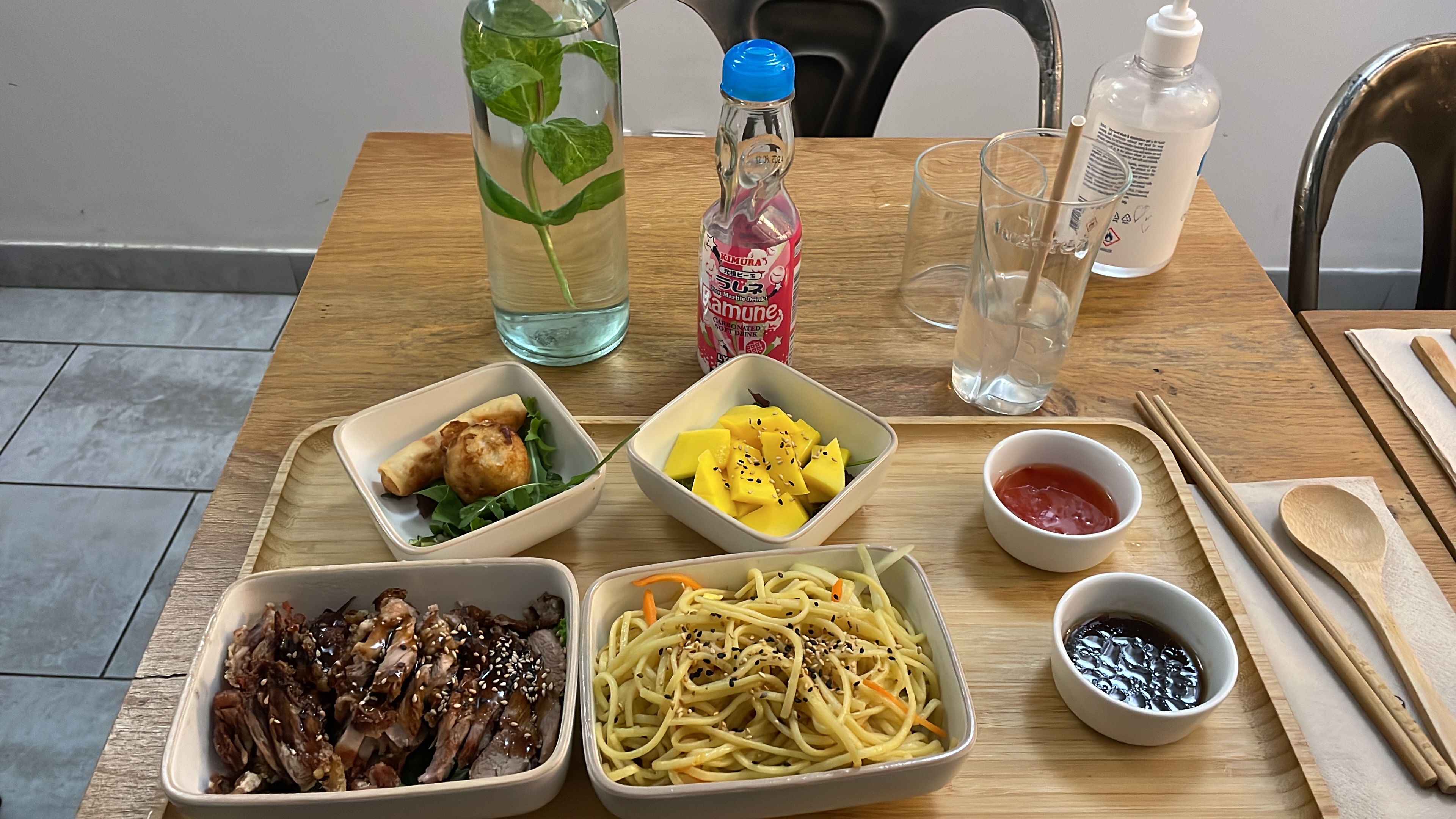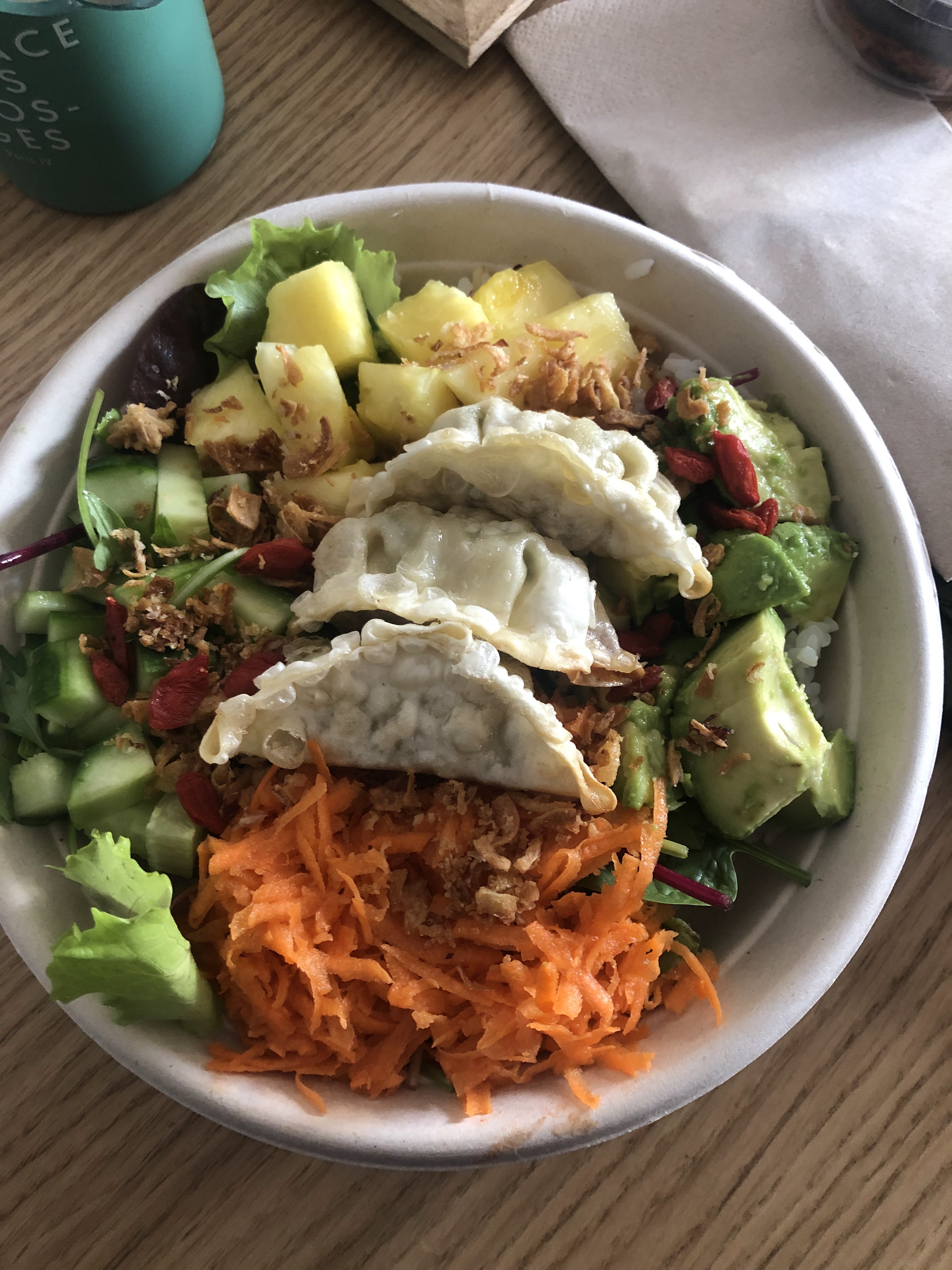 Endroit agréable calme, version plat comme au resto ou pokebowl/ bento à déguster sur place ou à emporter. Dans les 2 cas c'est bon et bien présenté. Leur gyoza de légumes sont excellent. Bon rapport qualité/prix. L'accueil et le service est très sympathique. Je vais y retourner souvent je pense.