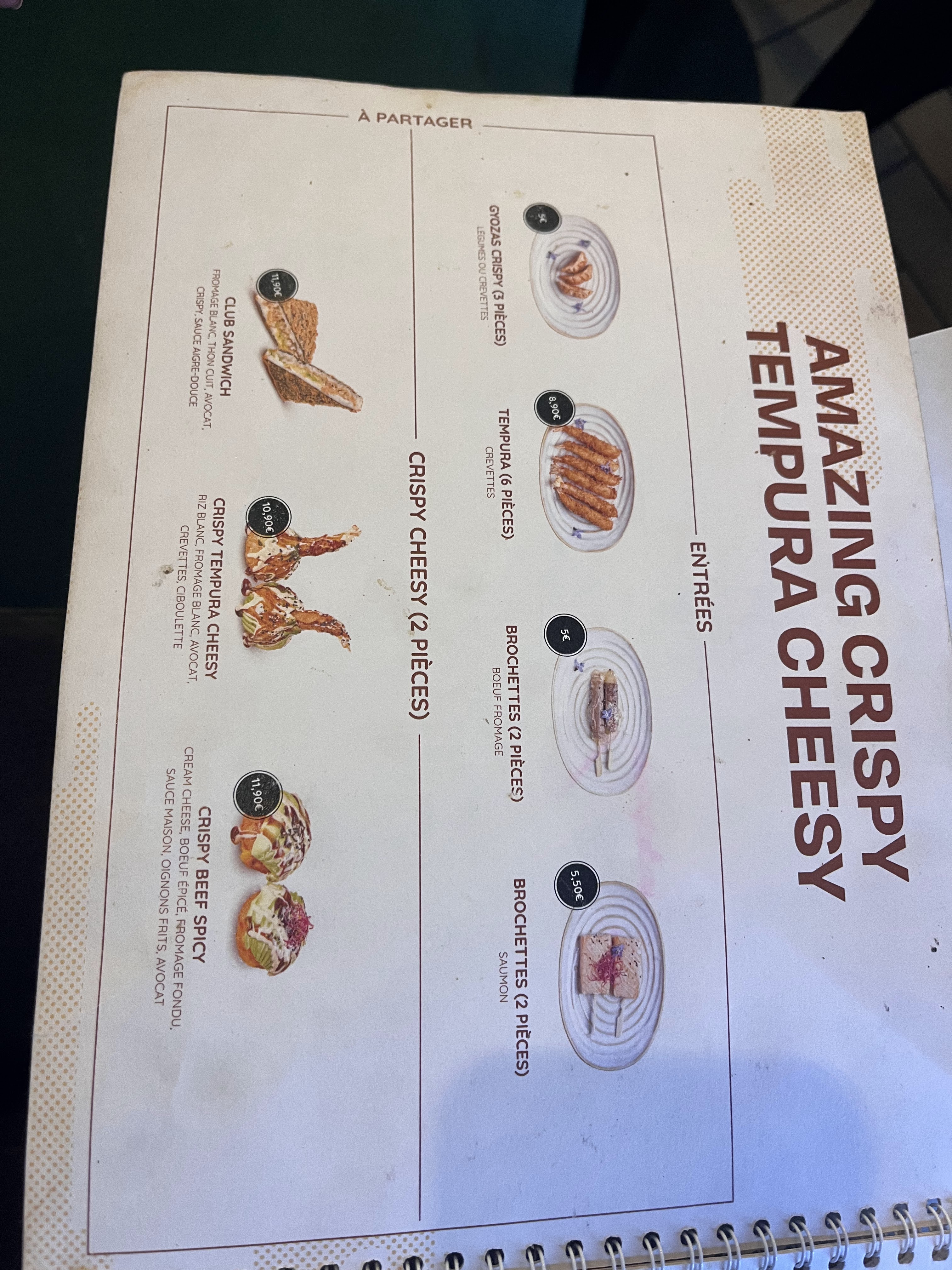 Excellent déjeuner plutôt asiatique, dans un grand bol du riz, du thon et saumon cru, crevettes, crudites de saison, sauce, avocat,oignons frits , salade de crabe.......tout cela avec des braguettes et pour un prix raisonnable. Je recommande.....