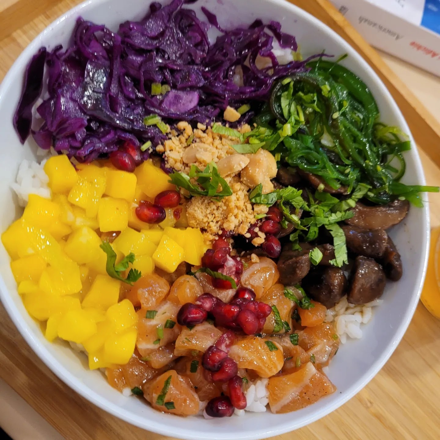 J'ai commandé un Poké bowl saumon il était bon et frais. Le service était agréable et rapide