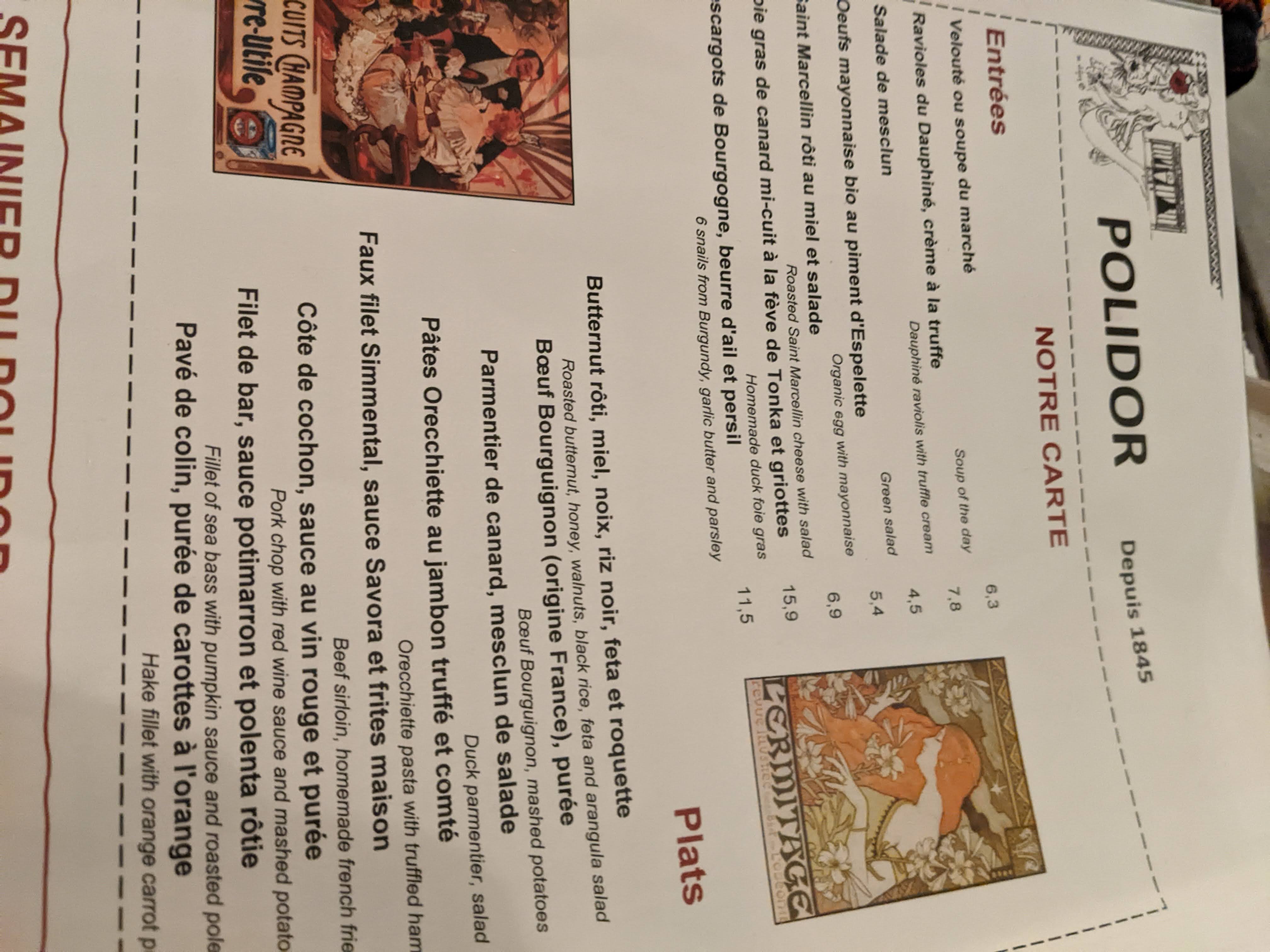 Un grand merci au Restaurant Polidor pour son accueil, la rapidité lors du service. Polidor c’est une institution parisienne. Les plats sont typiquement français et délicieux. Enfin, un lieu sur de la gastronomie française.