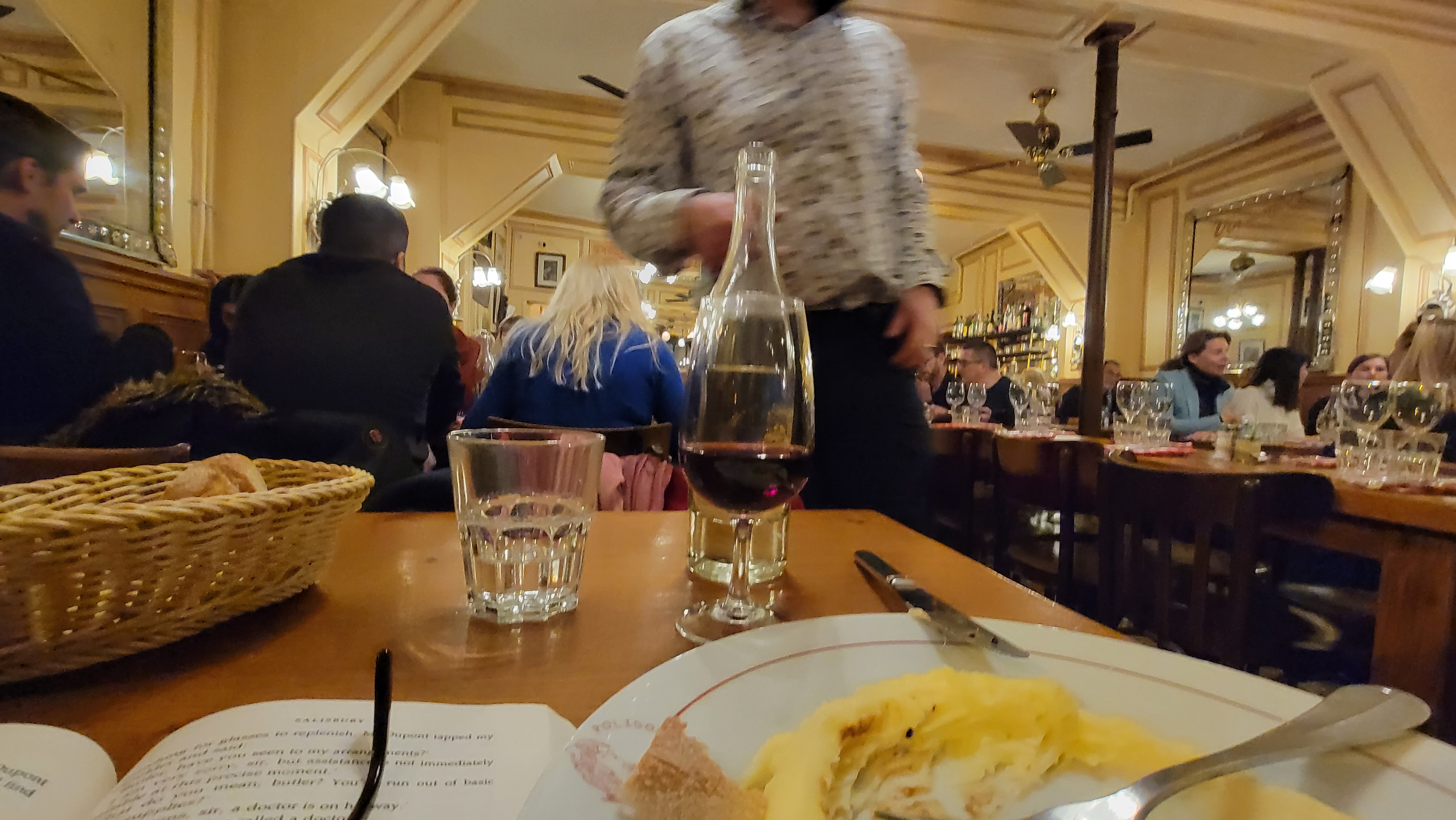 Ma famille et moi sommes allés à Polidor avant même que Gil Pender n'y rencontre Hemingway dans Midnight in Paris. Excellent resto local. Malgré tous mes efforts, je n'arrive pas à commander autre chose que des escargots, du bœuf Bourguignon et une bonne bouteille de rouge. Nous avons toujours reçu un bon service ici, mais cette dernière fois (le 21 septembre), le jeune manager, Mika, je crois, ne pouvait pas en faire assez pour nous. J’ai toujours été frappé par le panneau sur la porte qui disait qu’ils n’avaient pas accepté les cartes de crédit depuis 1845. Ils le font maintenant. 🤙🏼