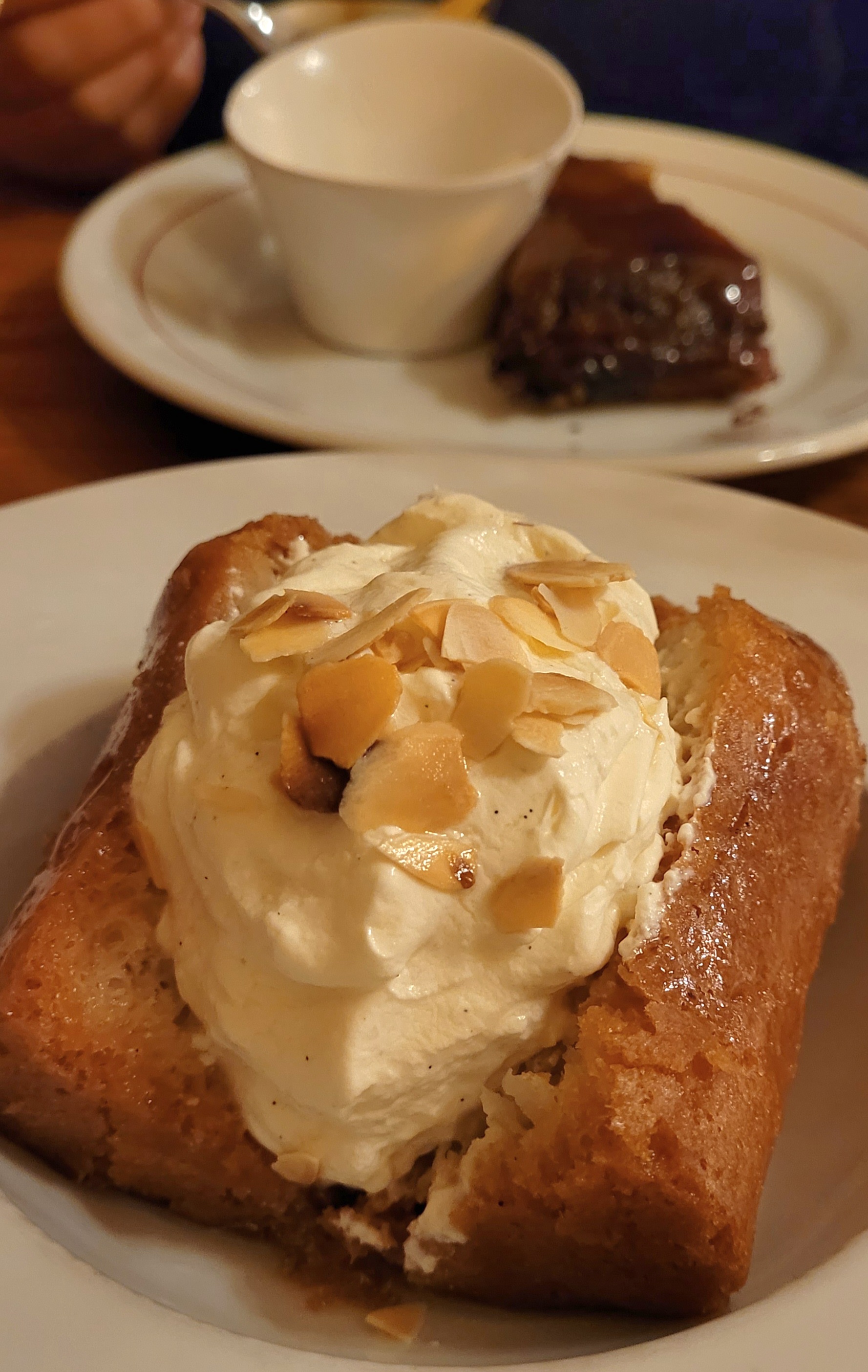 C'est un endroit que vous devez visiter. Je suppose que beaucoup de non-locaux viennent parce que c'est l'un des plus anciens restaurants du quartier (wikipedia), mais la nourriture est délicieuse ! Génial en effet. Le service était excellent. La carte regorge de classiques français et mon serveur avait un avis tranché sur les plats. Je lui ai demandé de m'aider à décider ; Je me suis rendu à ses suggestions et elles étaient excellentes. J'ai eu les escargots, le bœuf bourguignon et la tarte aux pommes renversée à la crème. Tout était parfait. D'accord, cela semble beaucoup, mais ne faites pas ce que je dis. P.S. soyez prêt à vous asseoir dans un style communautaire si vous êtes une ou deux personnes.