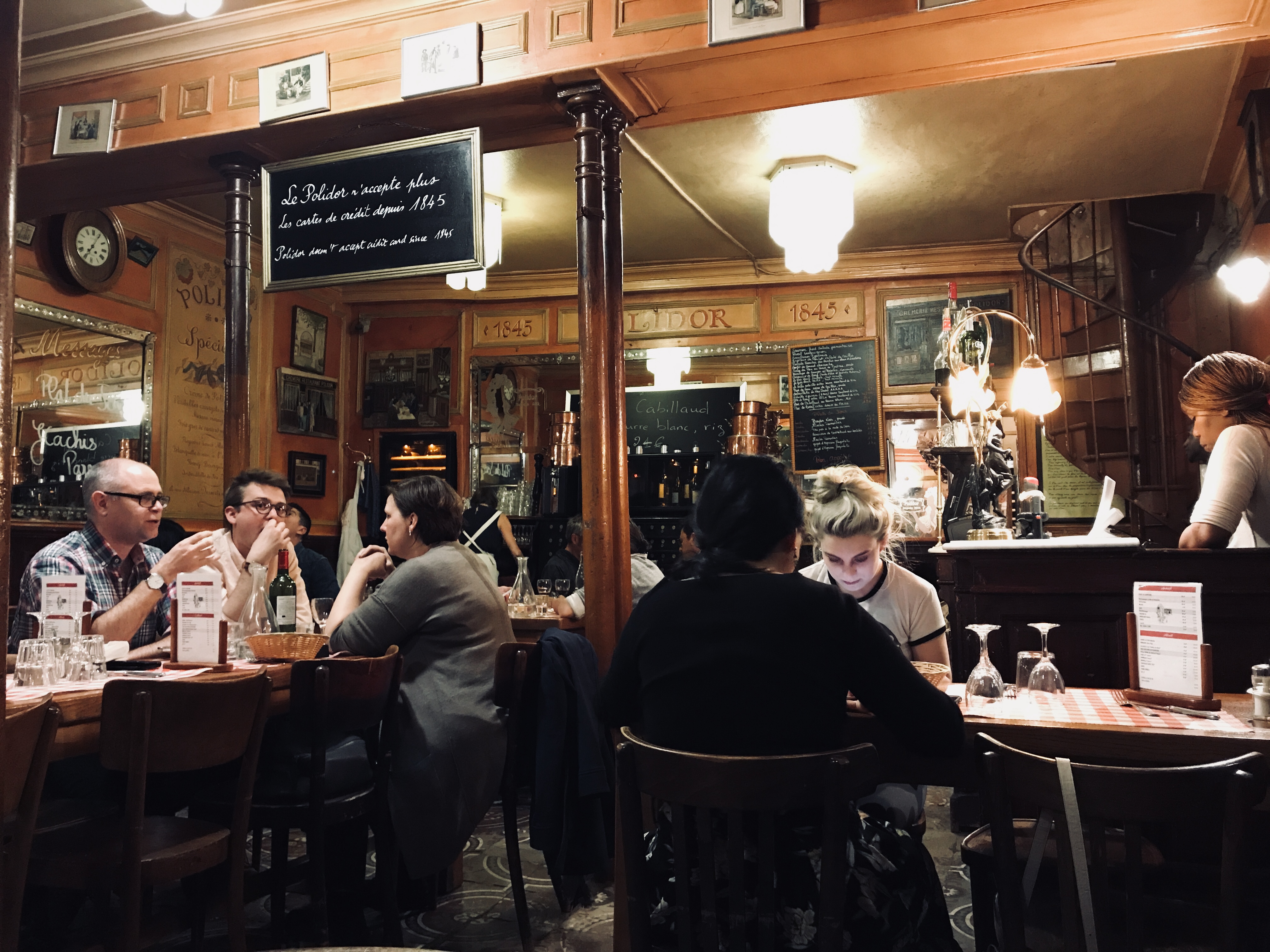 Polidor est un merveilleux restaurant français traditionnel qui sert une excellente cuisine à des prix raisonnables. Certains restaurants à Paris ont l'impression d'exister uniquement pour les touristes, mais celui-ci offre une expérience beaucoup plus authentique. Si vous avez le menu et prenez une carafe de la maison bordelaise pour le déjeuner, vous en ressortirez très content de vous et bien nourri.