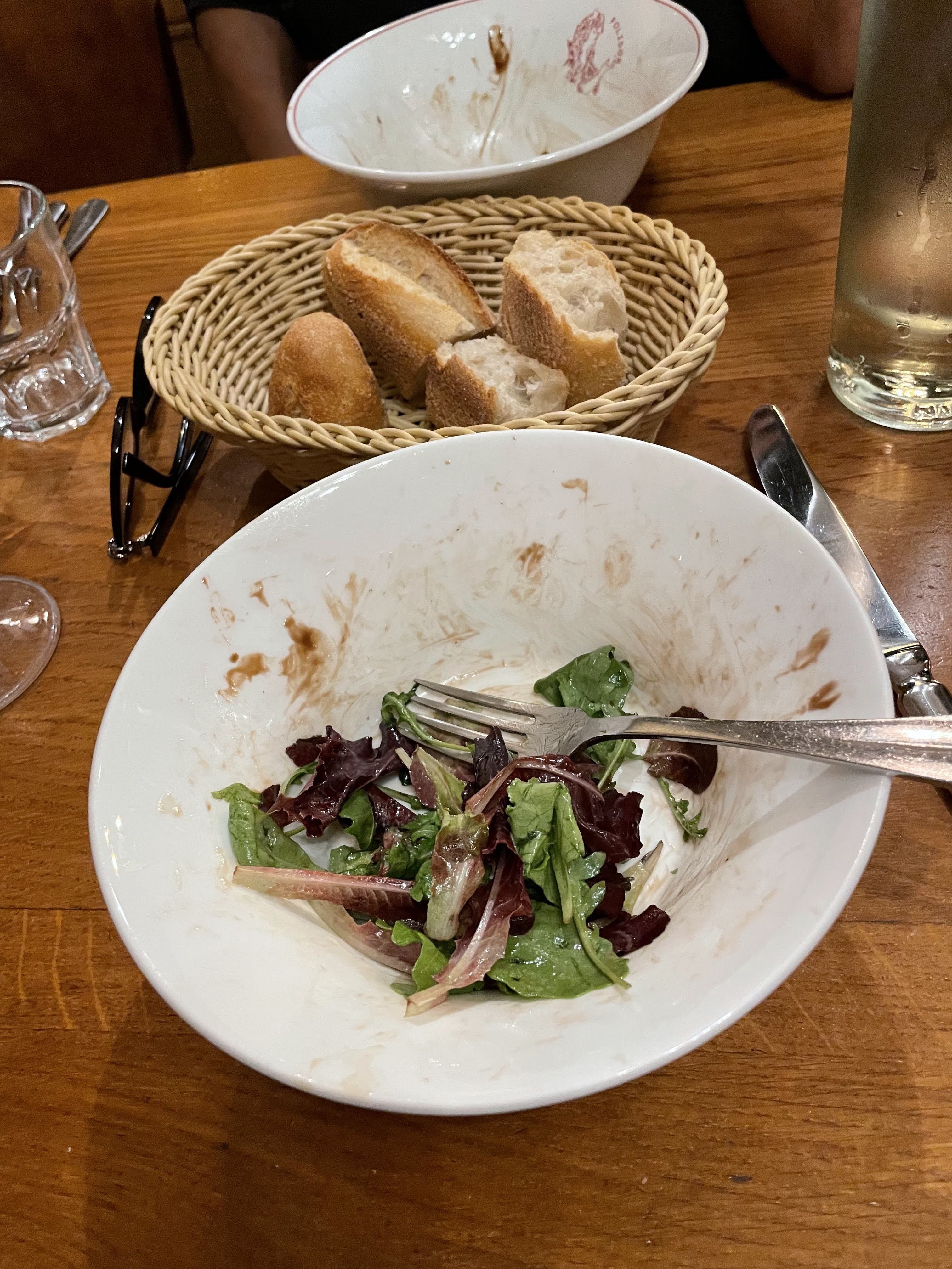 C'est un bel endroit chargé d'histoire… Hemingway et l'entreprise. Malheureusement, c'est suffisant pour couvrir les factures. La nourriture était horrible. Et nous venons des États-Unis. La salade était pire que dans un restaurant américain aléatoire. Mais notre préféré est une côtelette de porc. Imaginez une brique et une côtelette de porc très proches en texture et en moelleux. Vérifiez la vidéo. Les escargots étaient bons mais pas spéciaux.