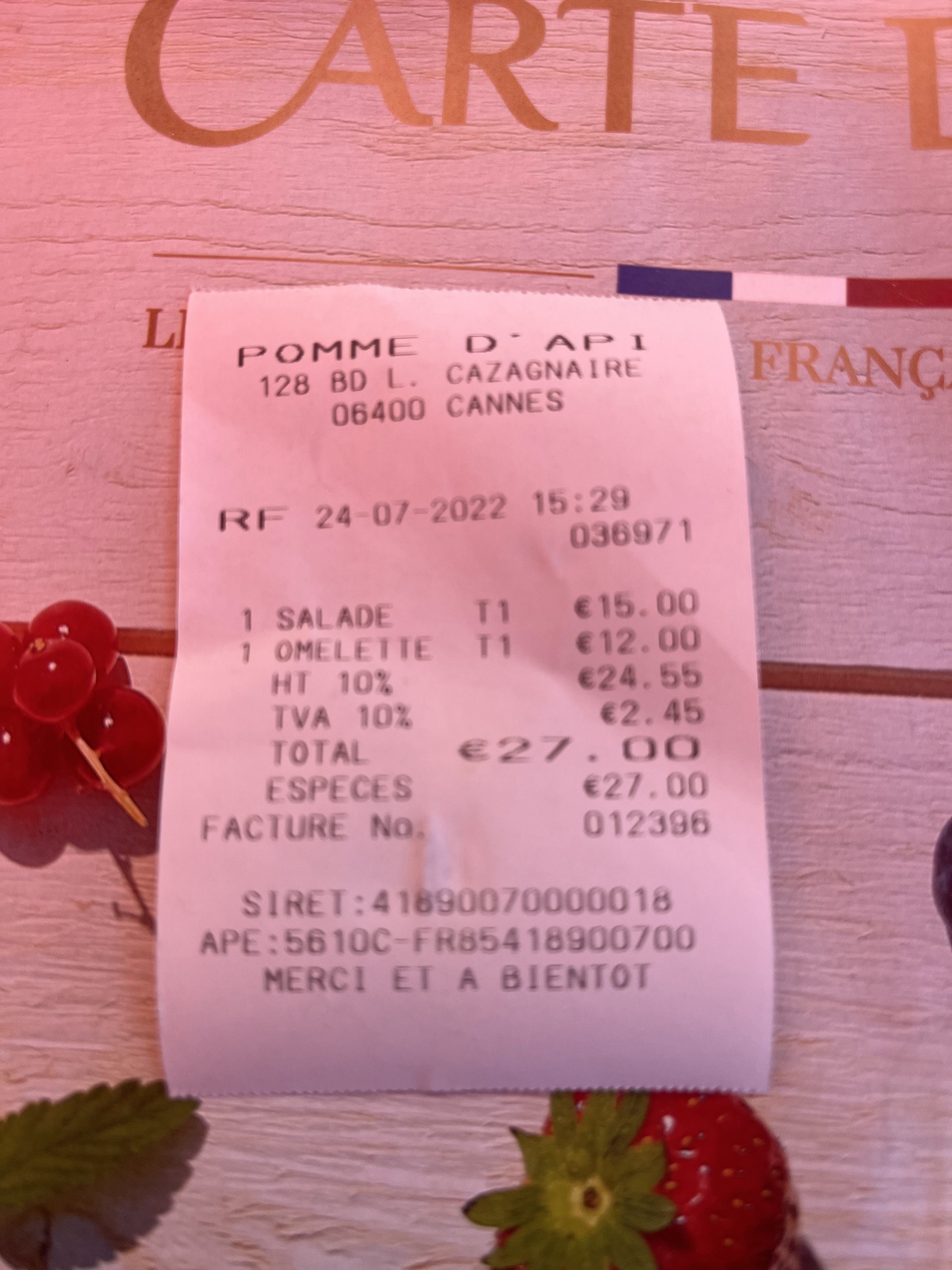 Déçue. Cher pour ce que c'est. Je préférais la pomme d'api d autrefois quand ç était en simple snack devant la plage.