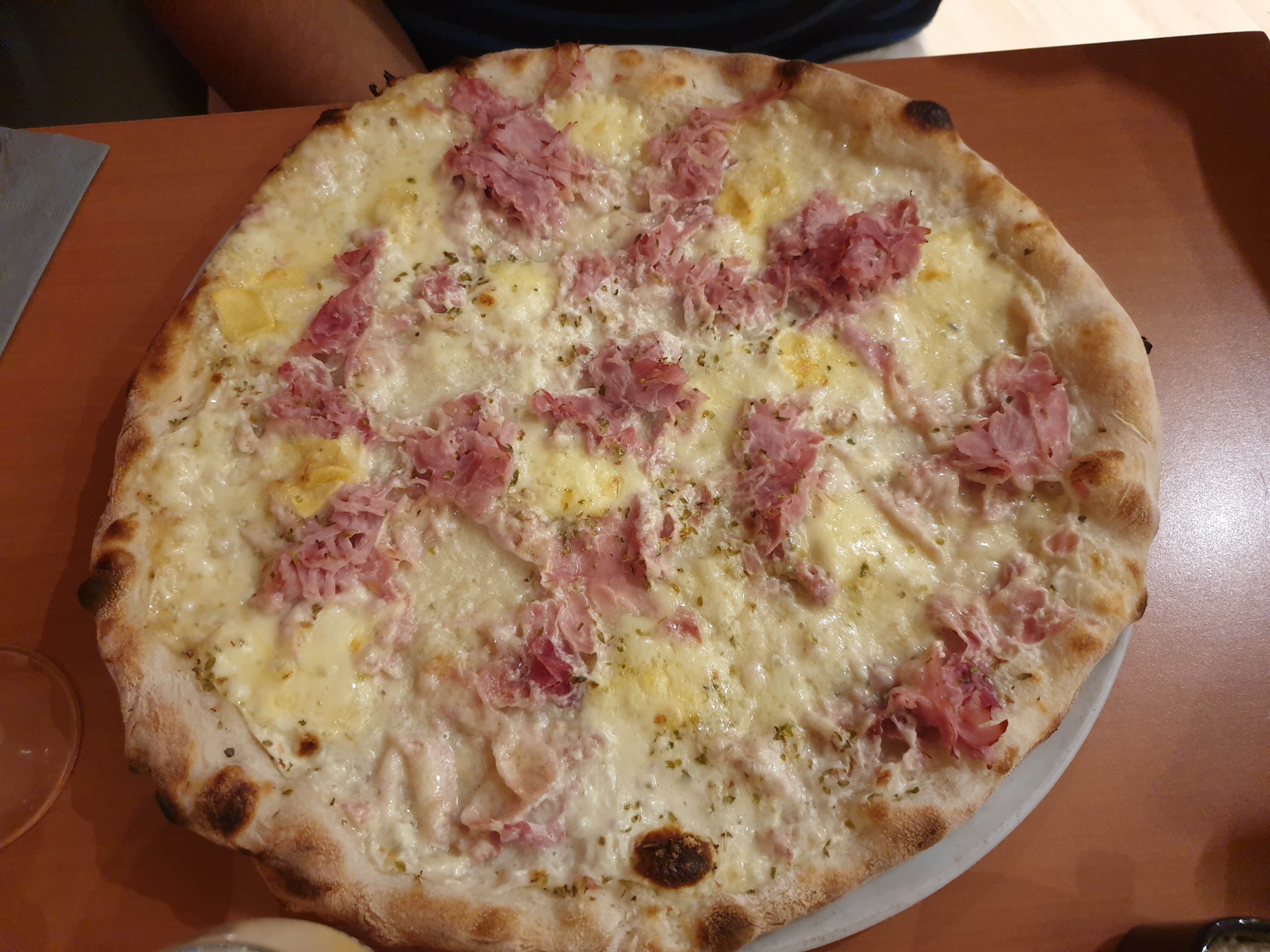 La pizza flamekunch alsacienne déçu trop de pomme de terre pas assez de crème fraîche La pâte très bonne Je suis alsacien donc connait Le reste correct