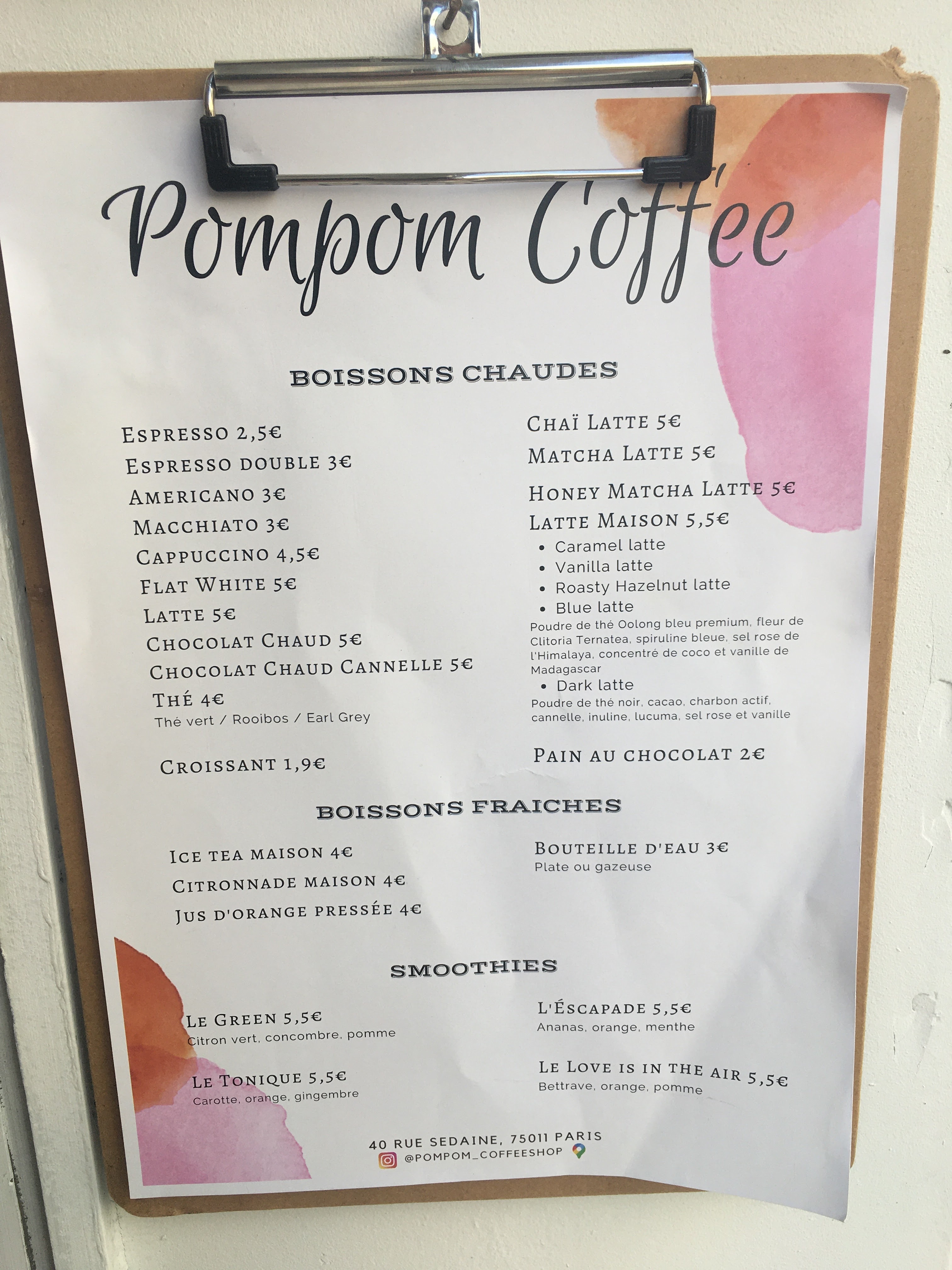 1er avis : Vraiment délicieux, les pancakes sont moelleux et la recette au saumon est excellente. Les boissons chaudes sont originales, le personnel très sympathique et tout ça à petit prix. Une très bonne adresse de brunch ! 2e avis : Après une excellente première expérience, je suis retournée quelques fois au café Pompom. Malheureusement à ma dernière visite c’était une catastrophe niveau service. Le serveur avait oublié notre réservation et a dû déplacer des personnes déjà installées pour nous donner notre table. Il était désagréable avec nous et avec ses collègues ce qui créait une atmosphère négative dans tout le café. Cependant la nourriture était toujours aussi bonne.