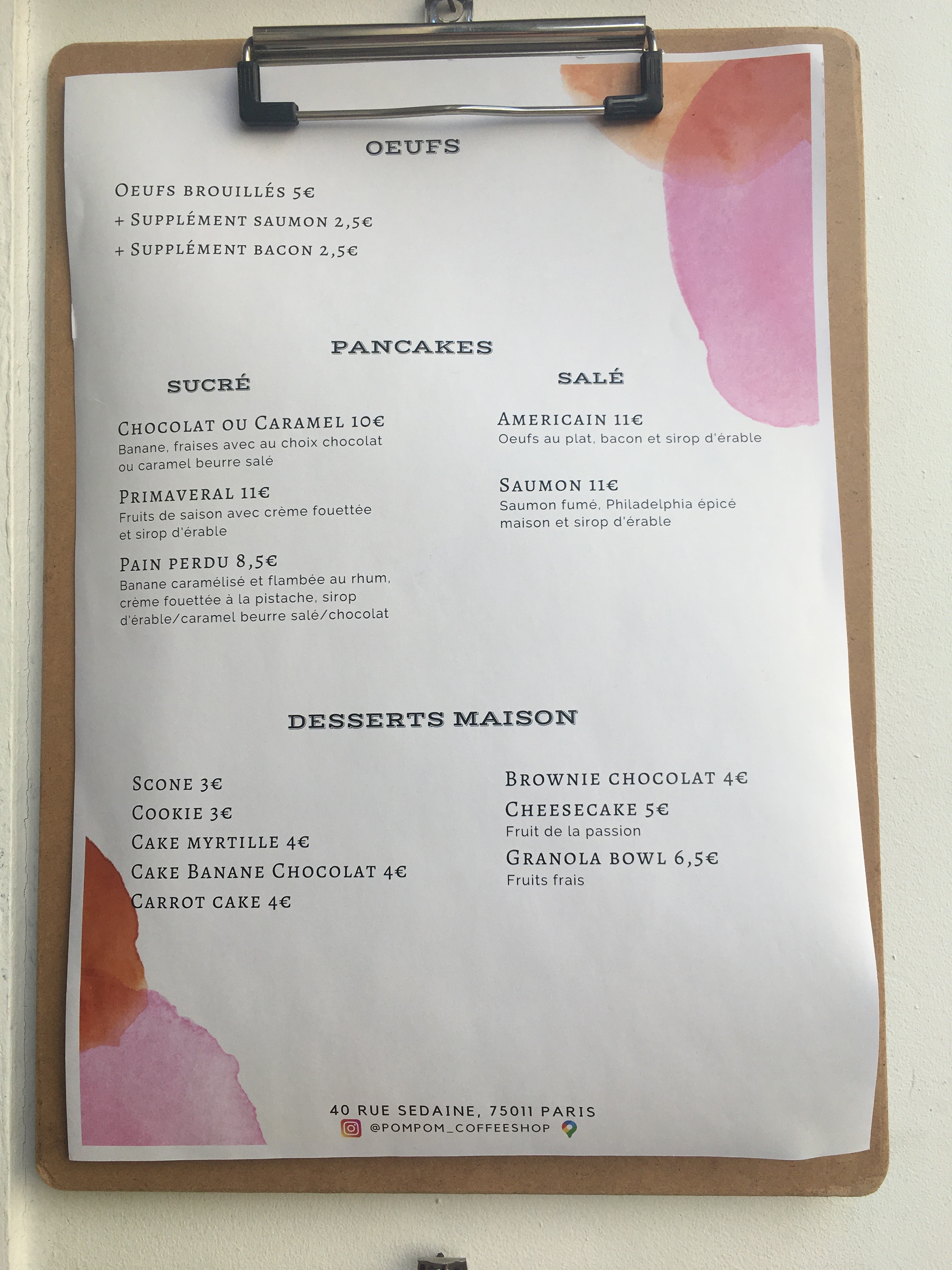 super adresse de brunch pas trop cher et où on peut réserver 🤞 (petit bémol : le granola avec des fruits pas du tout de saison, ça c’est dommage…)