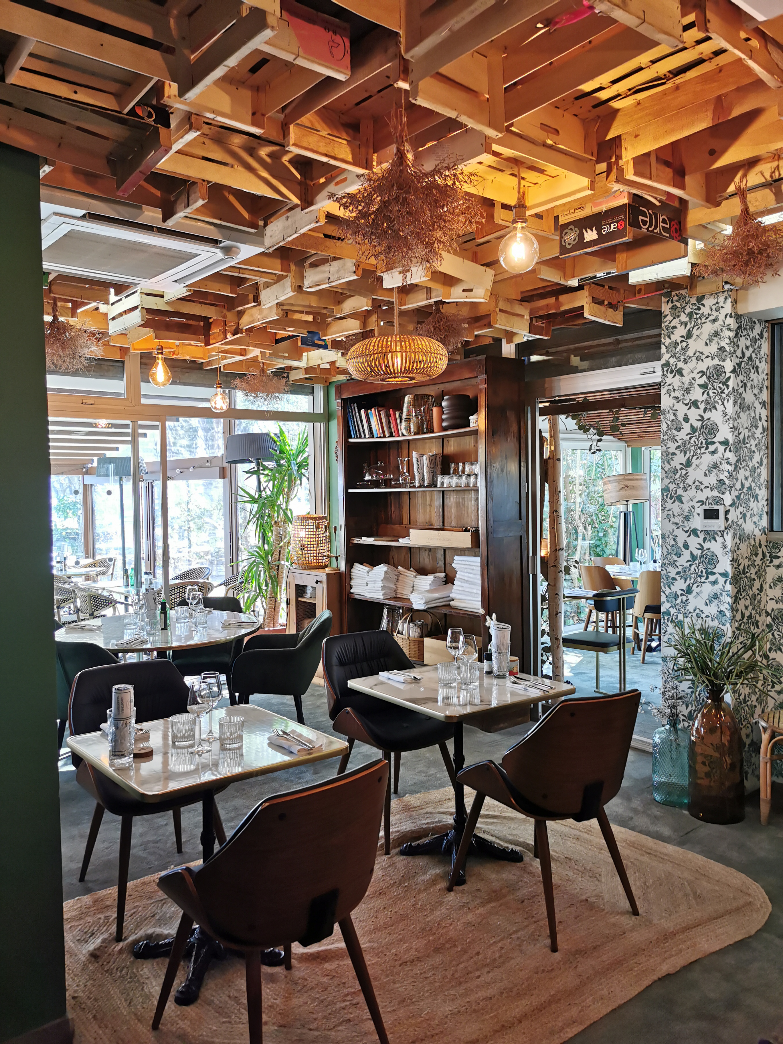 Le cadre est super ! Bons produits. Cependant, très déçus par notre déjeuner et le service : après avoir commandé une salade chèvre avec de la cecina de bœuf. La salade m'a été servie juste avec un tout petit toast de chèvre sans cecina. Je m'en suis aperçue à la dégustation et ai donc solliciter le service : on m'a répondu qu'il n'y avait en effet plus de cecina : donc la cuisine laisse partir un plat incomplet et le service ne dit mot. On m'a tout de même proposé de remplacer la cecina par autre chose mais qu'après ma sollicitation. Je trouve les prix très élevés et l'ambiance surfaite. Les desserts étaient bons.