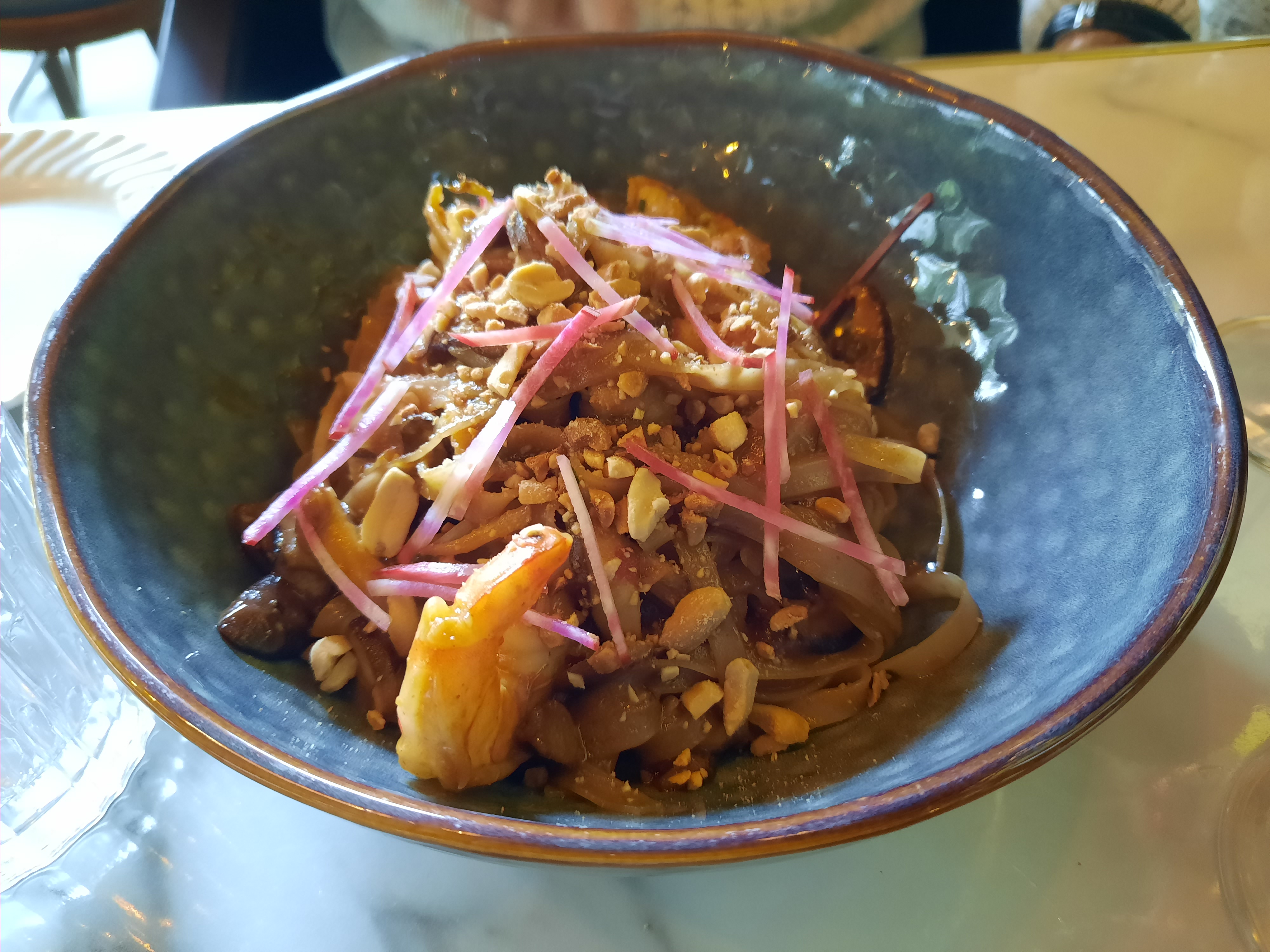 Formule plat/dessert avec un risotto de riz noir et gambas particulièrement savoureux (et copieux), en dessert nem d'ananas rôti crème pistache étonnant et gourmand. L'accueil est souriant et attentionné. A refaire 😊