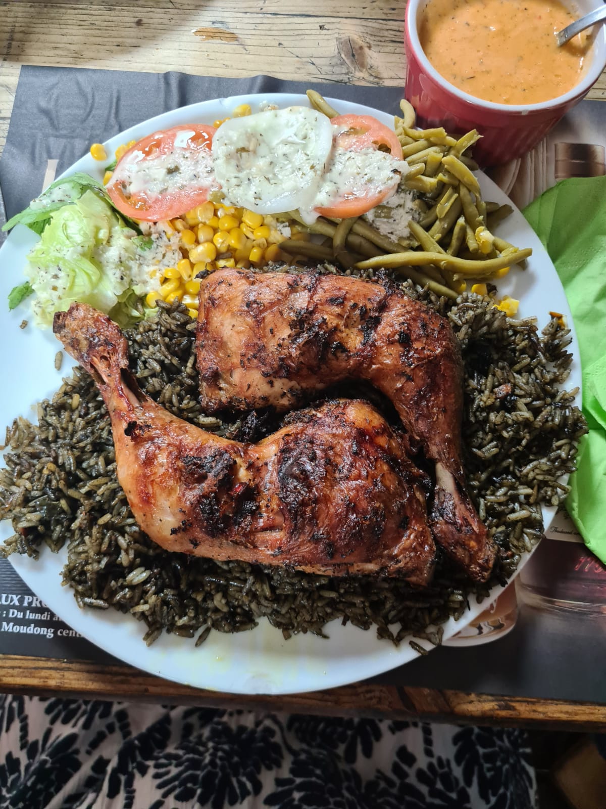 Après un petit Ponches planteur à la passion au passage, poulet frit riz jaja Excellent les gens, ils sont super sympa. La qualité est très bonne. Je recommande les yeux fermés, un paradis pour les grillades.