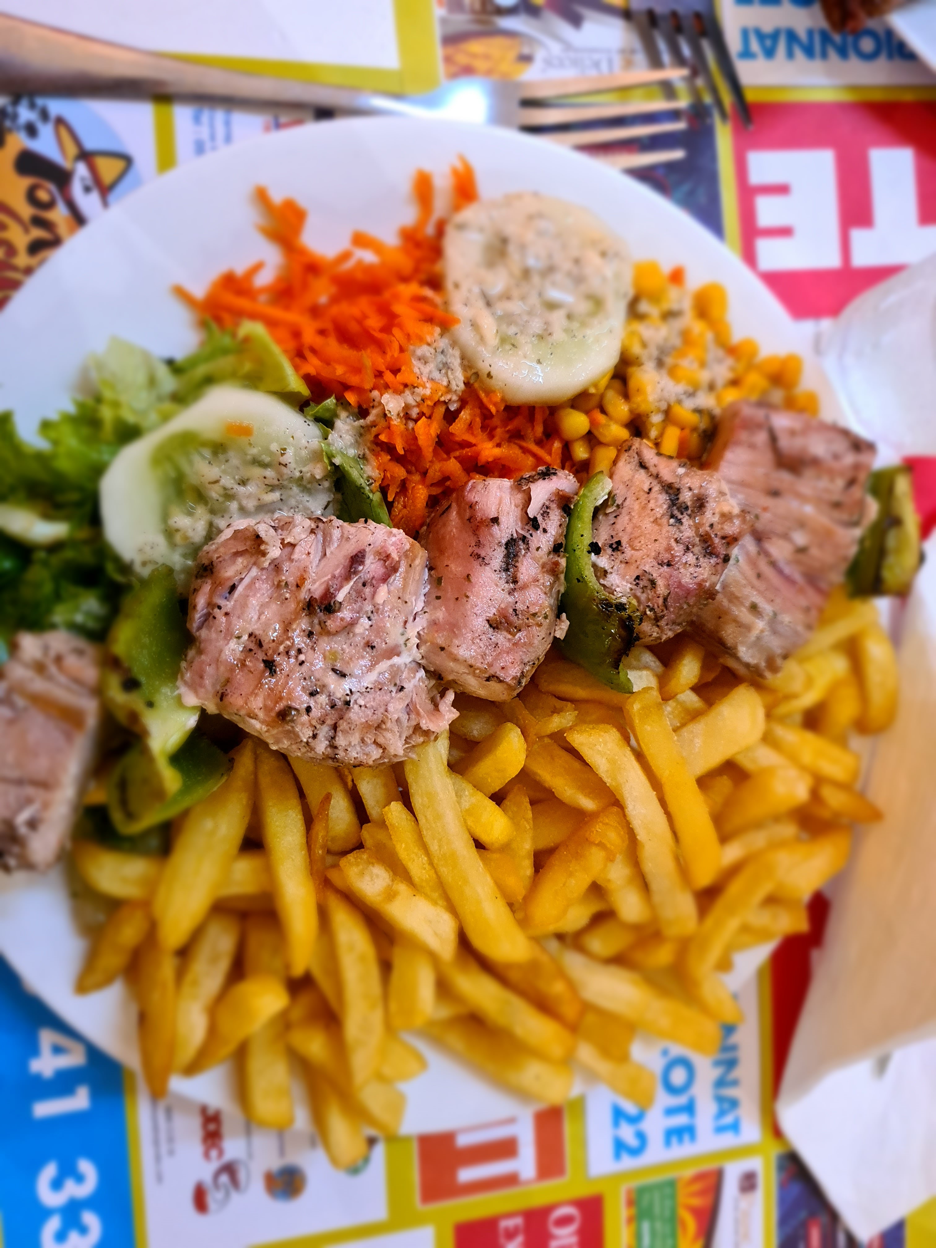 La viande est très bonne, les frites moins bonnes.. des frites surgelés ramollies. Le gros inconvénient, je pense que si vous êtes touristes, comme nous, à éviter !! La serveuse est très désagréable, nous prend de haut, accompagné d’un regard haineux .. pas de bonjour, ni de merci.. le néant ! Mais la nourriture était bonne ! N’y aller pas pour obtenir un sourire, vous n’en aurait pas 😉