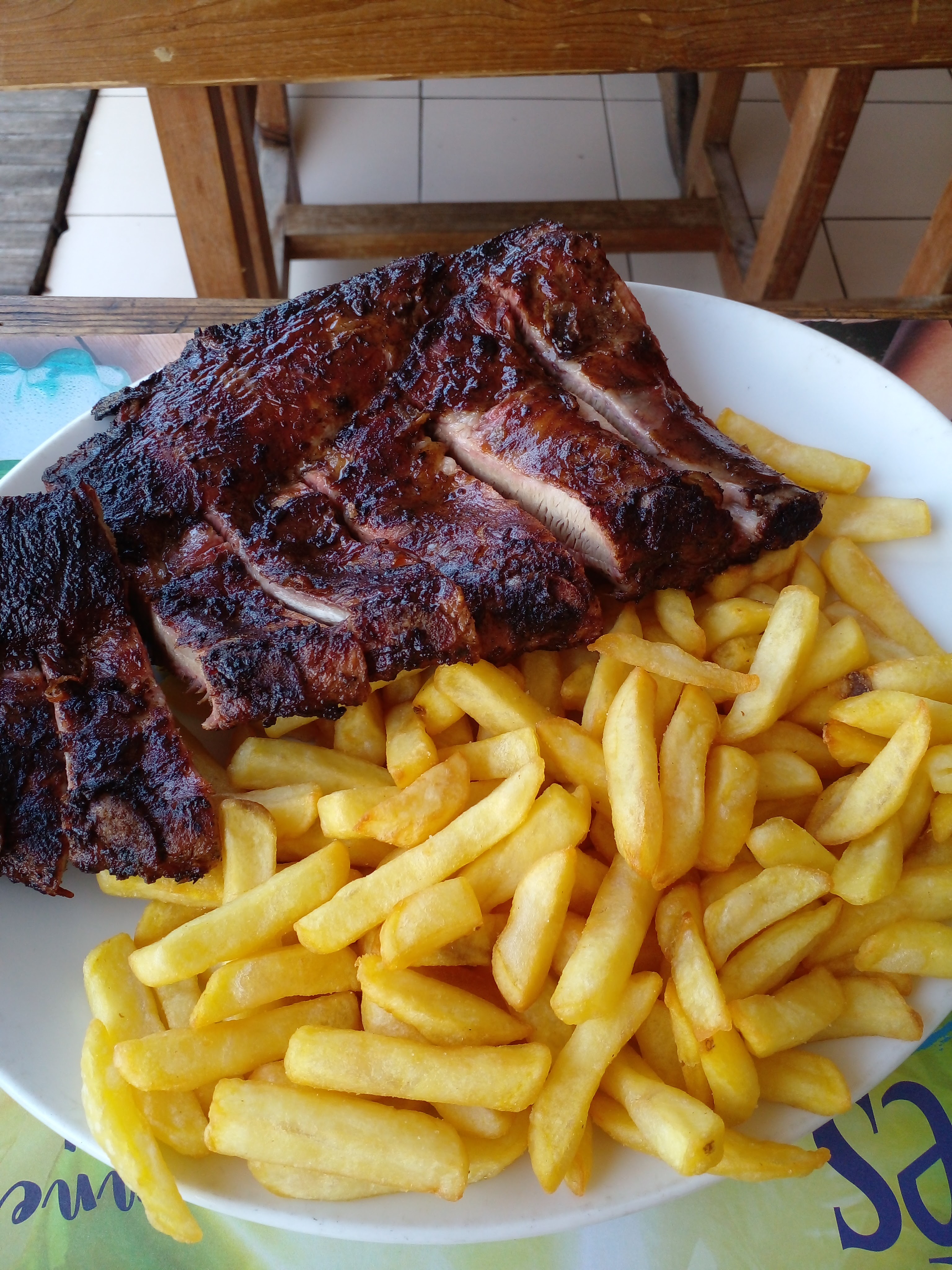 À l'air de rien en passant, mais la côte de boeuf et le poulet étaient succulents. Attention aux frites et au riz, la petite portion peut nourrir une armée 🤣. Rien à redire que du bon goût dans la bouche.