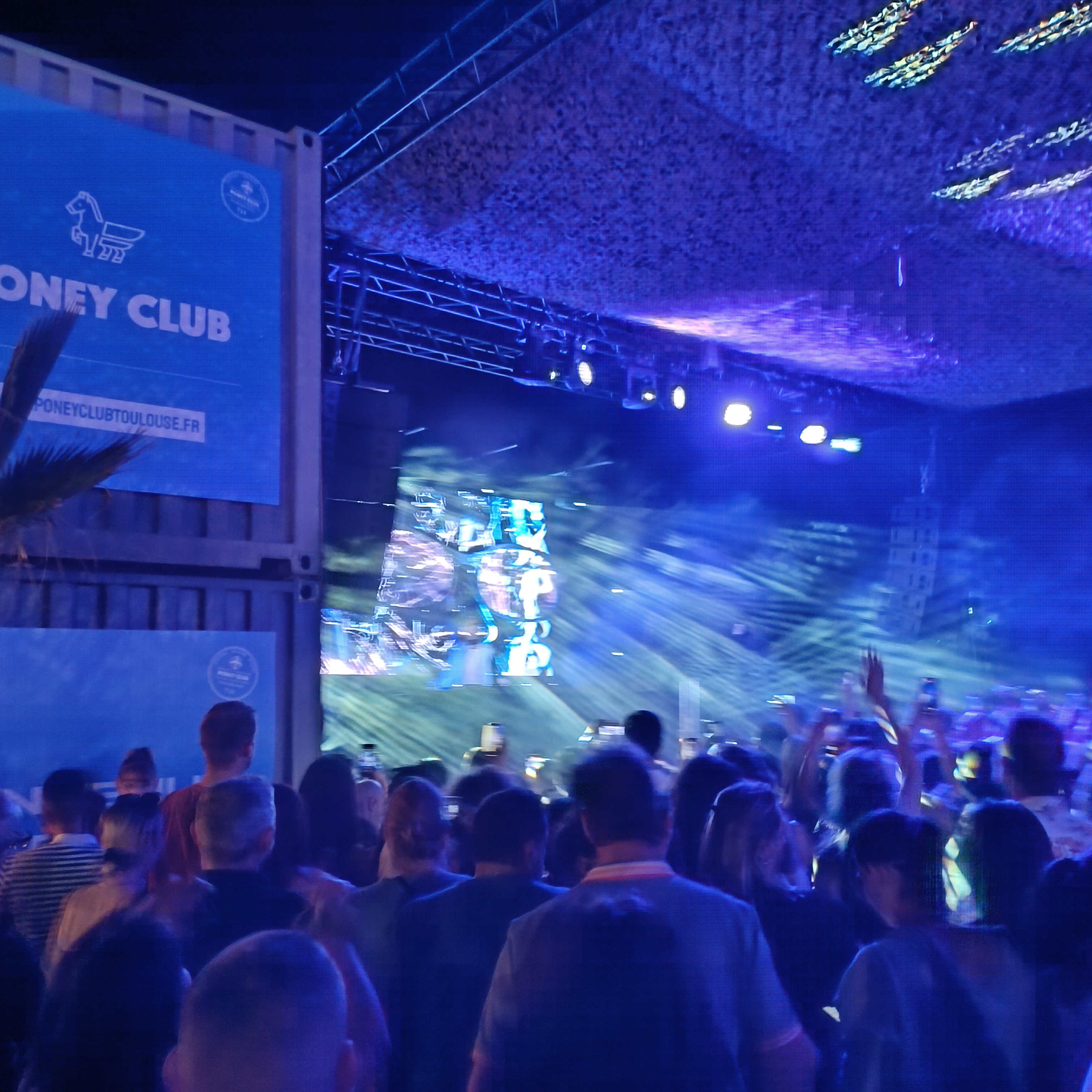 Assez mitigée pour mon expérience au Poney Club dans son nouveau lieu à Blagnac. Commençons par les points positifs : - Ambiance sympa - Mise en place de navettes à barrière de paris donc assez pratique - Line-up super intéressant avec de très bons artistes Maintenant les points négatifs : - Le lieu n’a aucun charme, on est vraiment sur un parking avec quelques tables et une scène - Les tarifs des boissons + nourriture sont assez élevés - Le son est vraiment pas terrible, c’est tellement dommage - Le public est parfois pas en accord avec l’artiste, désolée mais faire des pogos sur de la techno?? - Queue trop importante pour aller aux toilettes ou acheter à boire Bref, à tester si l’artiste vous plaît vraiment mais sinon je ne pense pas y retourner, je ne vois pas vraiment l’intérêt… c’est dommage car il y avait la possibilité de faire tellement mieux
