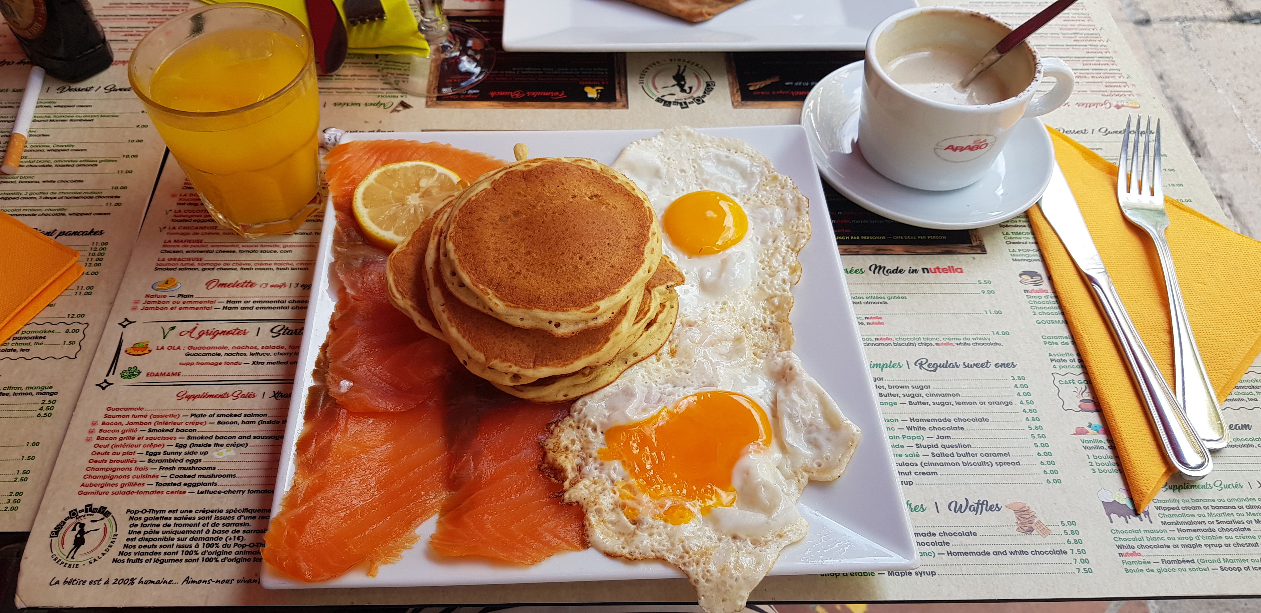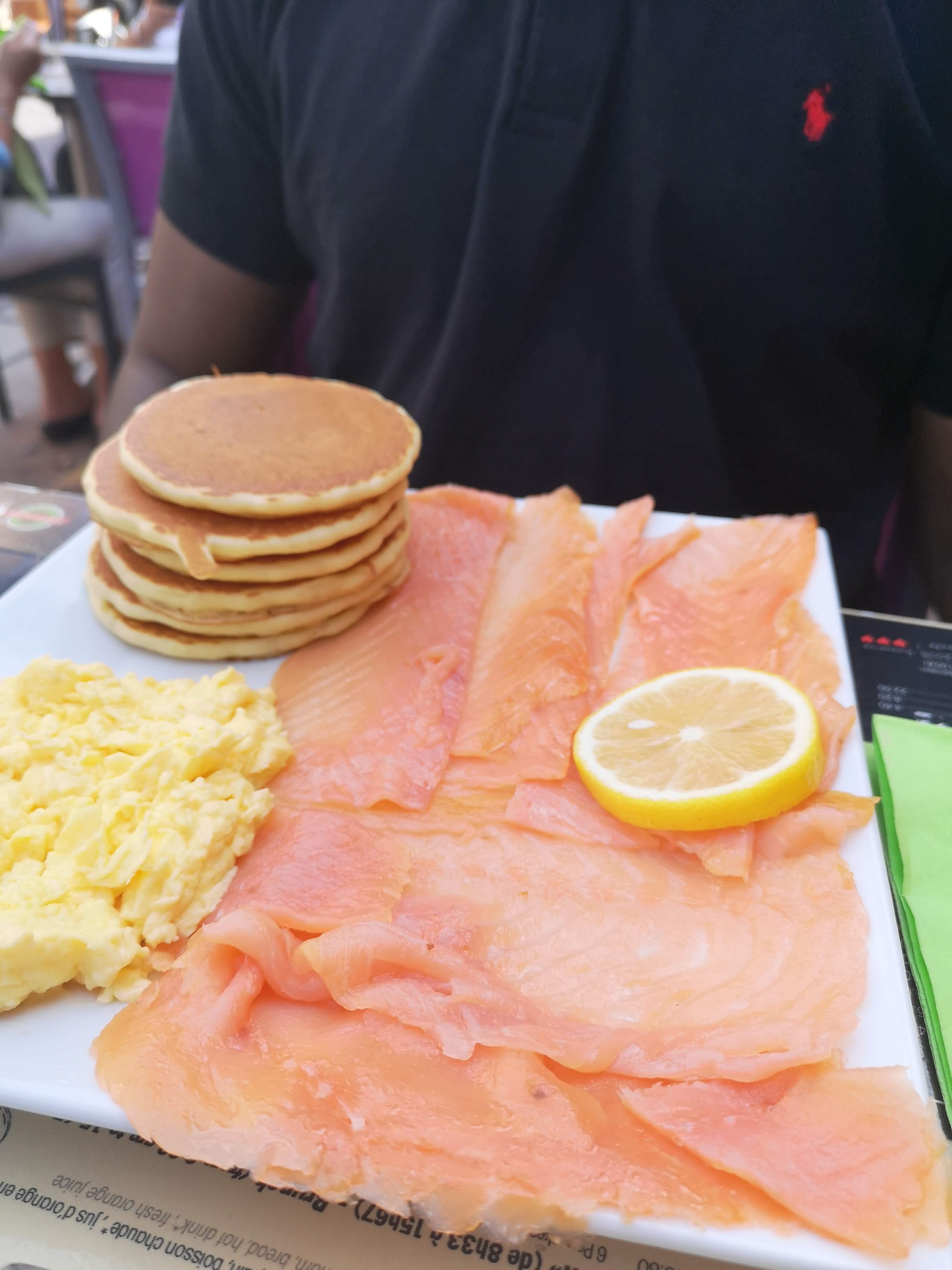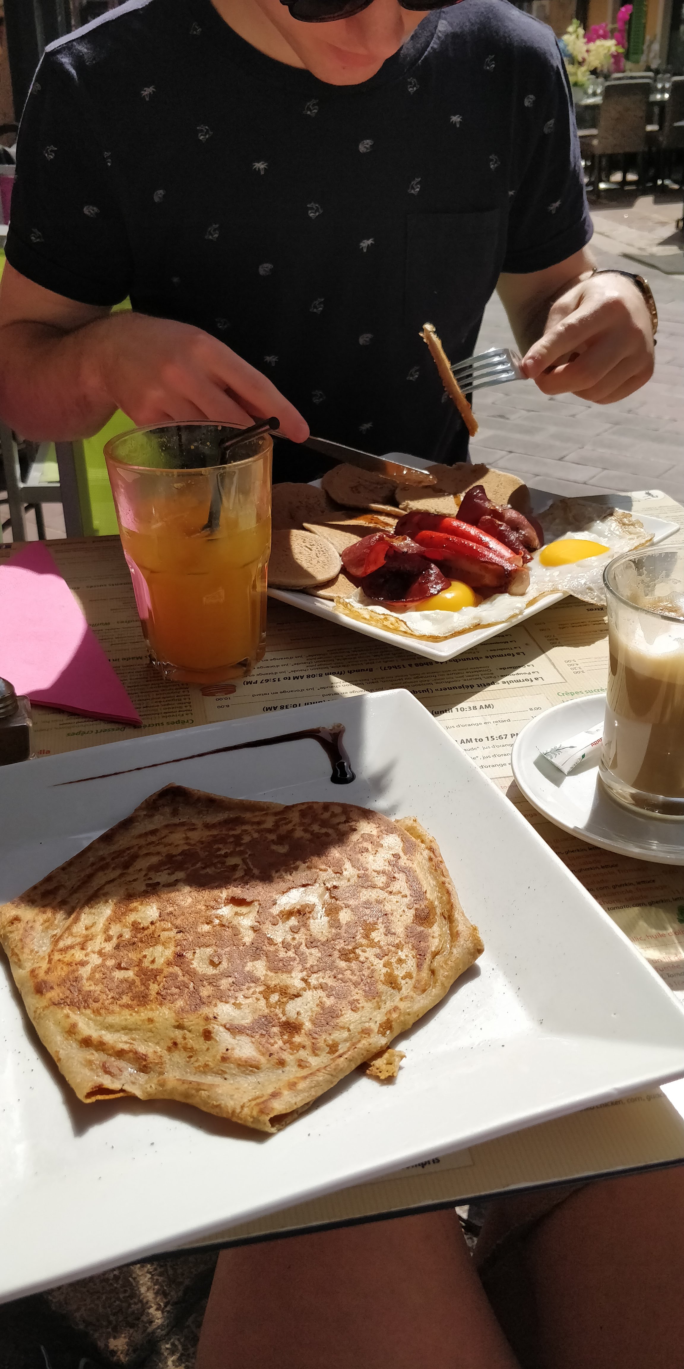 Le meilleur endroit pour prendre un petit-déjeuner à Nice. Nous avons essayé le brunch qui comprend des œufs, du saumon, des crêpes, du jus d'orange et du café. Tout était délicieux ! Je recommande également les crêpes au caramel. En plus de la nourriture délicieuse, le service est superbe. C'était définitivement le plus rapide que nous ayons eu à Nice.