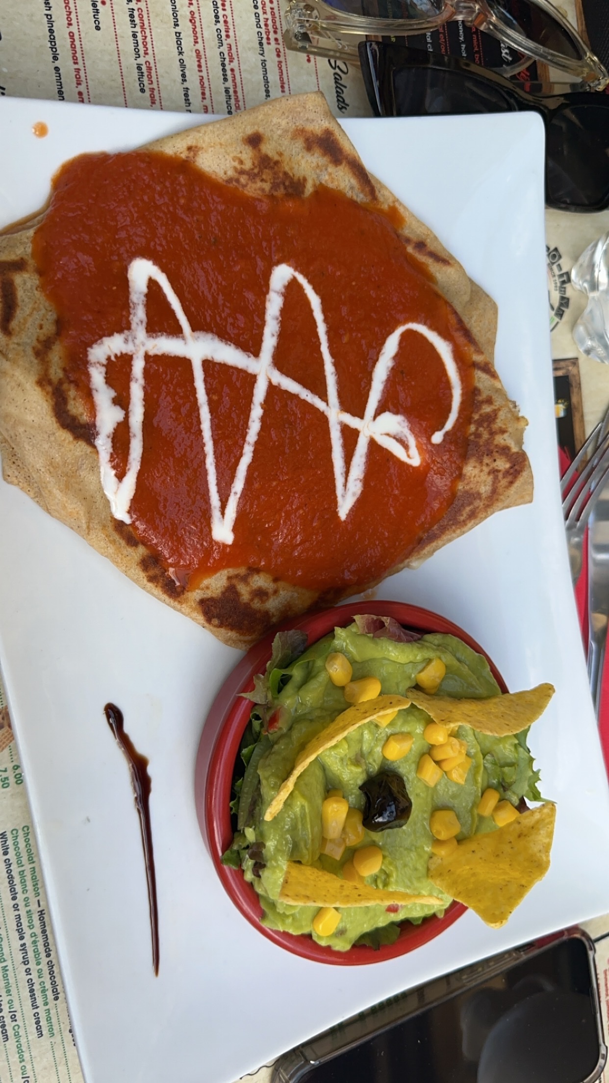 Certainement LE spot où manger au moins une fois lors d'une visite à Nice, en France. Leurs crêpes sont leur spécialité et WOW sont-elles délicieuses. Les prix sont super et les portions sont énormes. La nourriture est incroyable et le service n'est pas à la traîne. Tout le monde est très sympathique et le propriétaire se promène généralement. Il semble aimer interagir avec tout le monde : les locaux comme les touristes. Nous sommes arrivés et ils se sont assurés que nous étions à l'aise. La deuxième fois que nous y sommes allés, ils nous ont fait asseoir à l'extérieur et ont remarqué que nous étions juste un peu mal à l'aise à cause du soleil et de la chaleur, alors ils l'ont fait fonctionner et nous ont assis à l'intérieur. Assurez-vous de consulter leur plat du jour. Pour nous, c'était un type de crêpe pour le petit-déjeuner, puis un choix de glaces, de crêpes de style désert ou d'autres choses accompagnées d'une boisson. C'était tellement bon et nous n'avons pas pu le terminer nous-mêmes. Le guacamole m'a surpris parce que d'habitude le guacamole est détrempé et a un goût bizarre, mais leur guacamole était également incroyable. Dans l'ensemble, c'est une si grande expérience et j'y retournerai certainement.