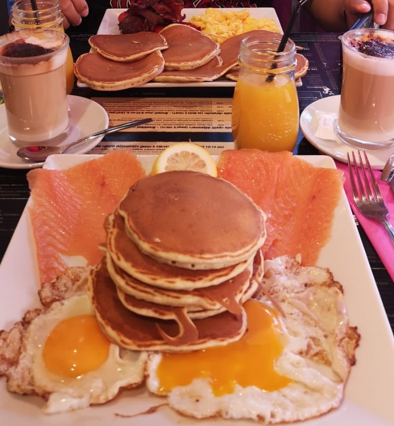 J'ai eu le menu du brunch qui comprend 6 crêpes, deux œufs, du bacon, du jus d'orange et du thé. C'est une bonne crêpe. Le prix est d'environ 14 ou 15 € pour le menu brunch. Je pense que pour le prix c'est un peu cher. Si vous cherchez quelque chose à manger à moins de 10€, cela ne correspondra pas à votre budget. Ce restaurant propose également de nombreux menus, par exemple des crêpes, des salades, etc. Le propriétaire est gentil et bon. Nous n'avons pas eu de changement pour essayer le milkshake mais je pense que ça pourrait être bien. Le restaurant est un peu petit, il compte environ 7 tables.