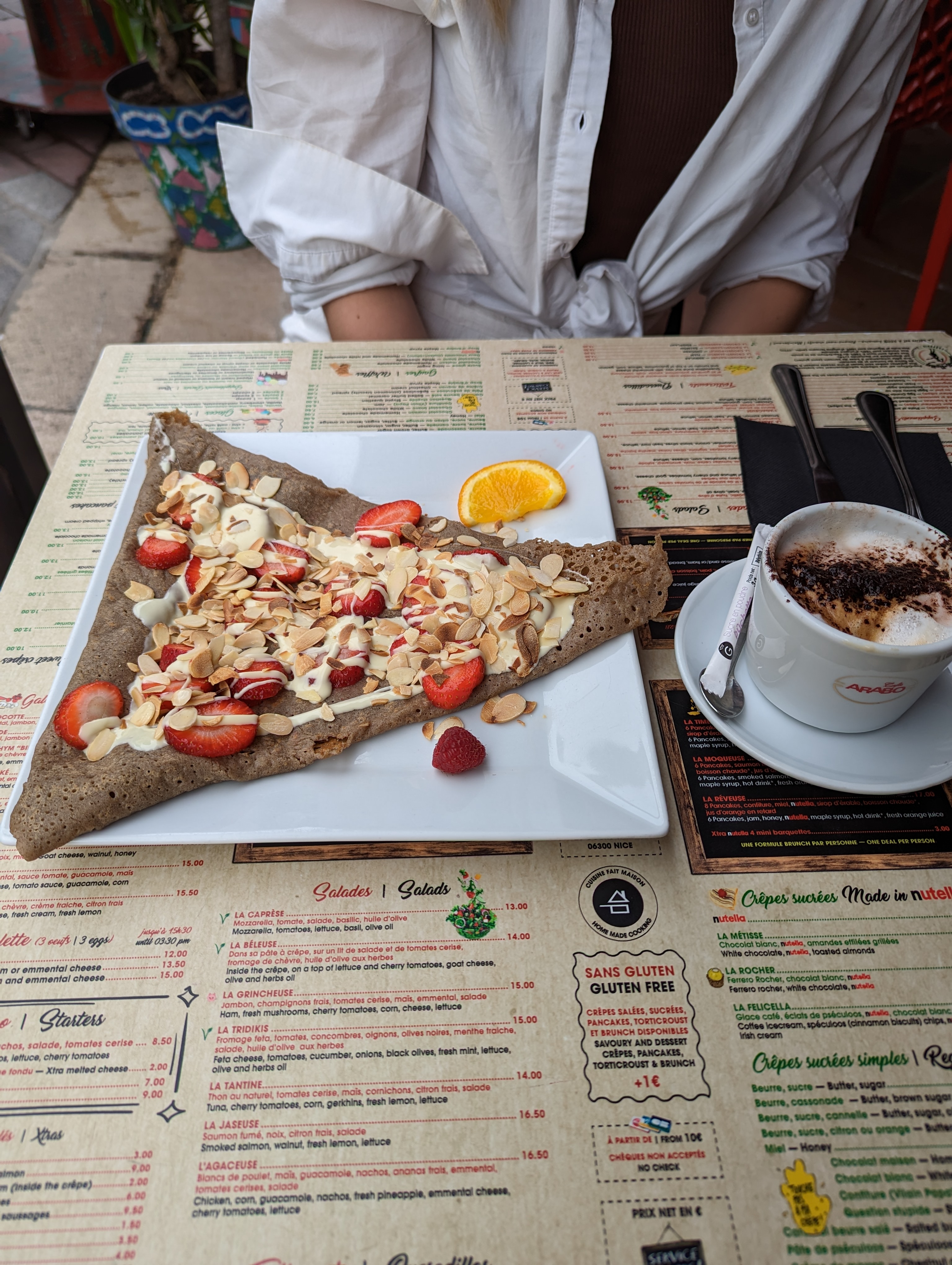 C'était un endroit charmant pour mon partenaire intolérant au gluten. Toutes les crêpes (salées ou sucrées) peuvent être réalisées sans gluten et le personnel est très attentif à éviter toute contamination croisée. C'était amusant, le service était bon et la nourriture était excellente pour finir. Je recommande le smoothie aux fruits mélangés par une chaude journée !