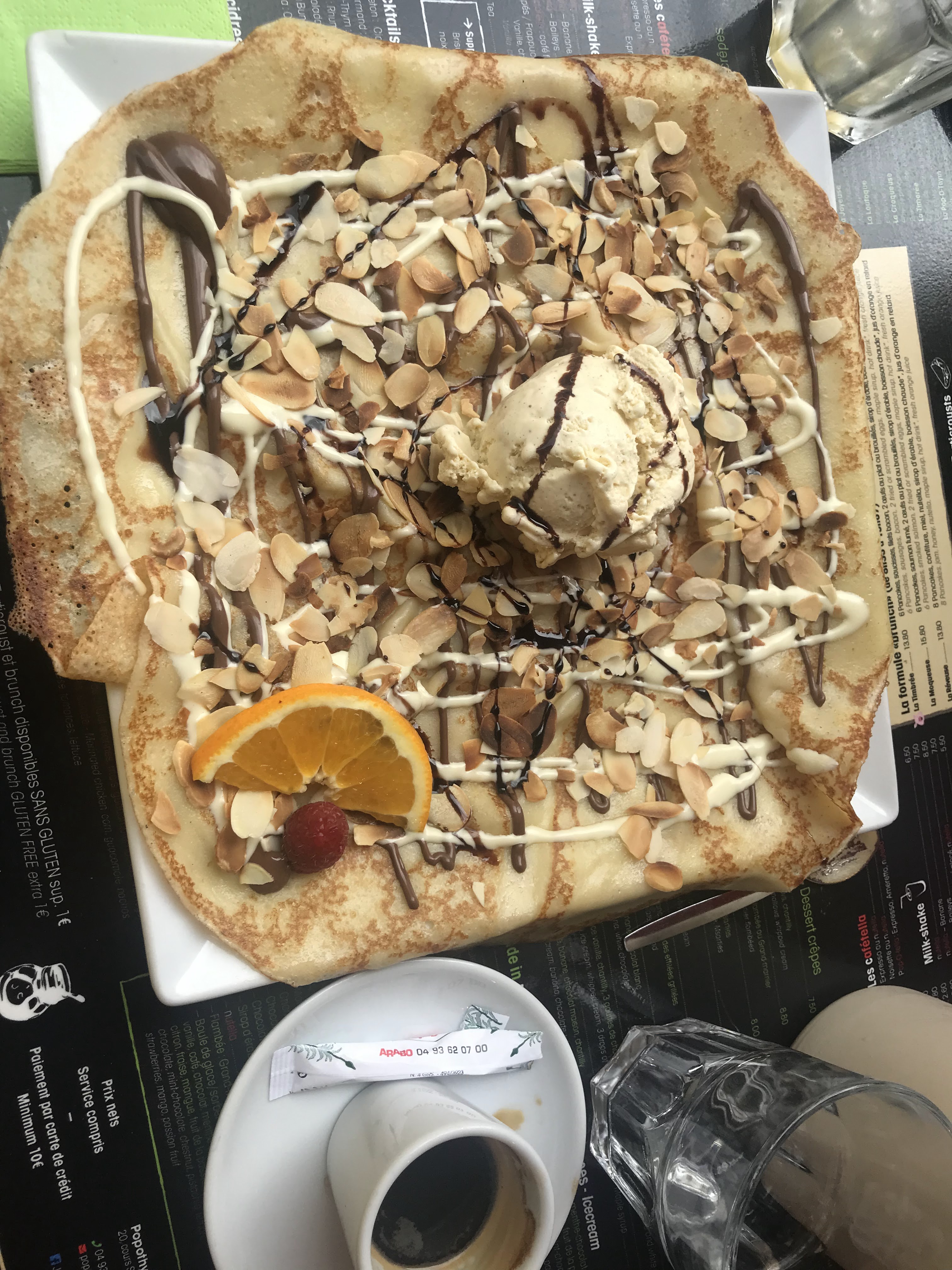 Les meilleures crêpes de Nice... C'est du moins ce que disent les critiques... Eh bien, c'était très bon, tout comme les boissons et le service. Il y avait beaucoup de monde et nous avons dû nous asseoir au soleil, mais nous avons apprécié la nourriture. Très grand menu et de nombreuses options, venez affamés.