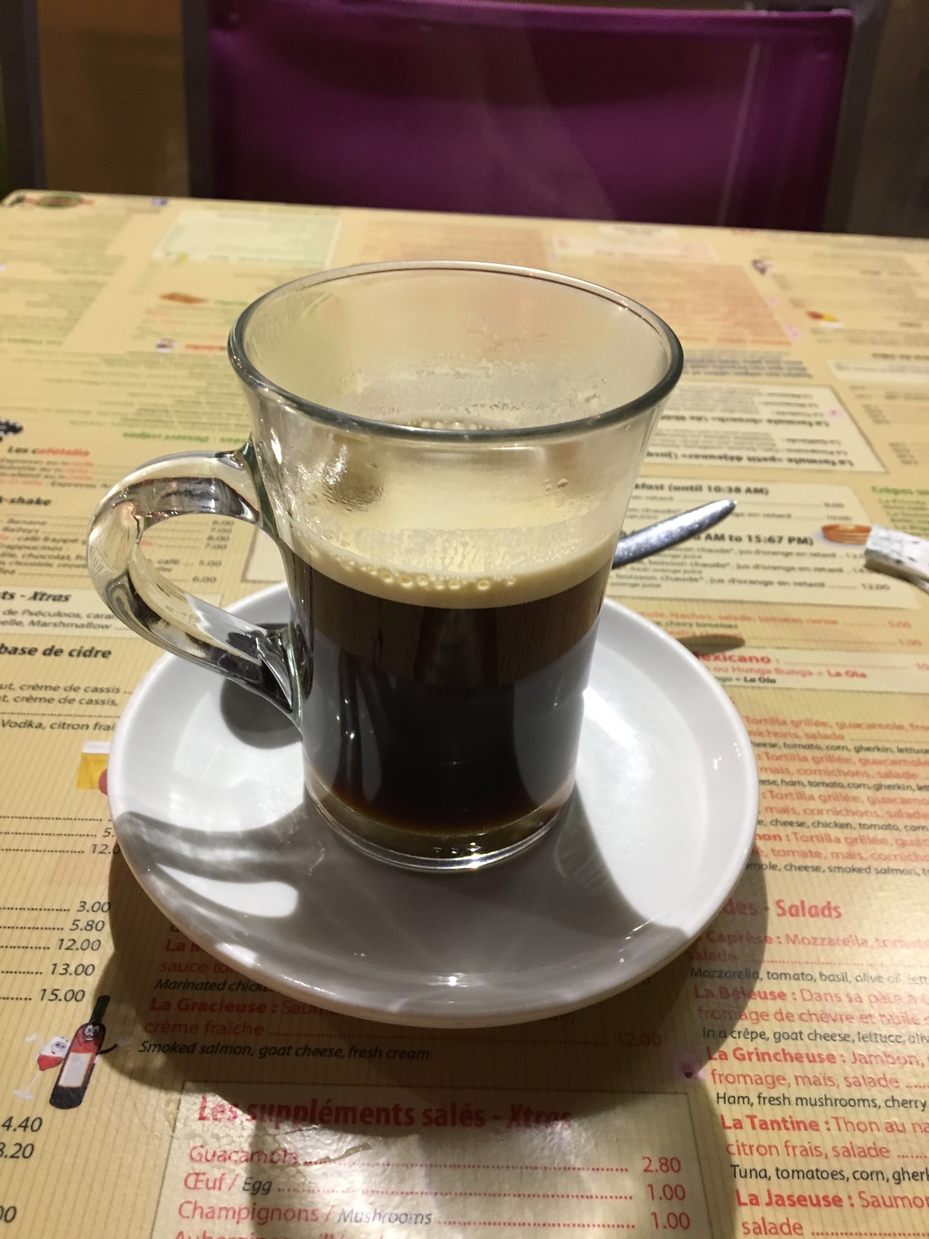 la crêpe était bonne mais le personnel…. Le grand homme à lunettes, je pense que le propriétaire était très grossier et grincheux…
