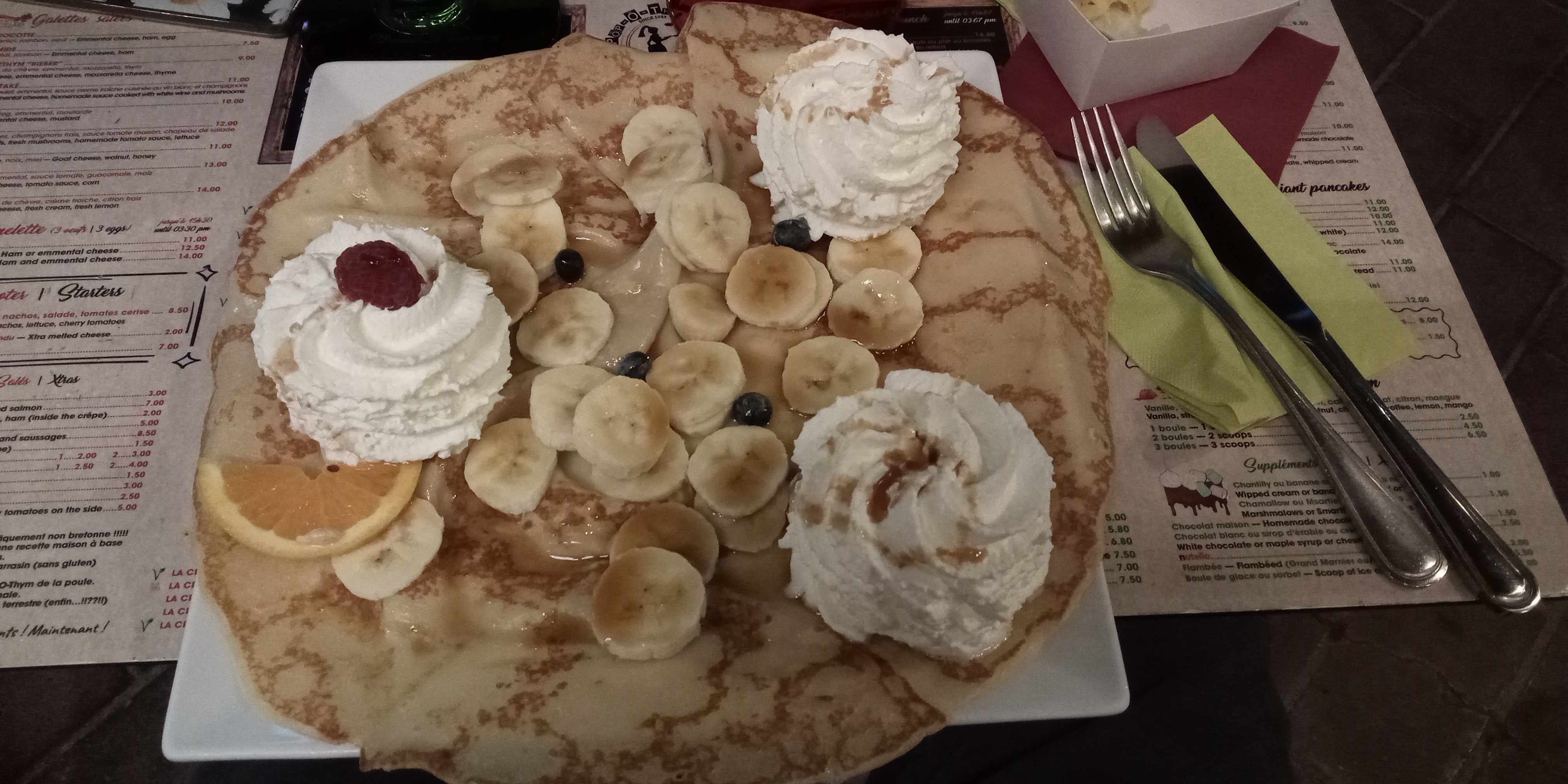 J’y ai mangeais en février dernier et franchement leurs crêpes sont très bonnes. De plus ce n’est pas facile de trouvais un restaurant ouvert jusqu’à 22h00. Je vous recommande cette crêperie qui se situe sur une place plus sympa.