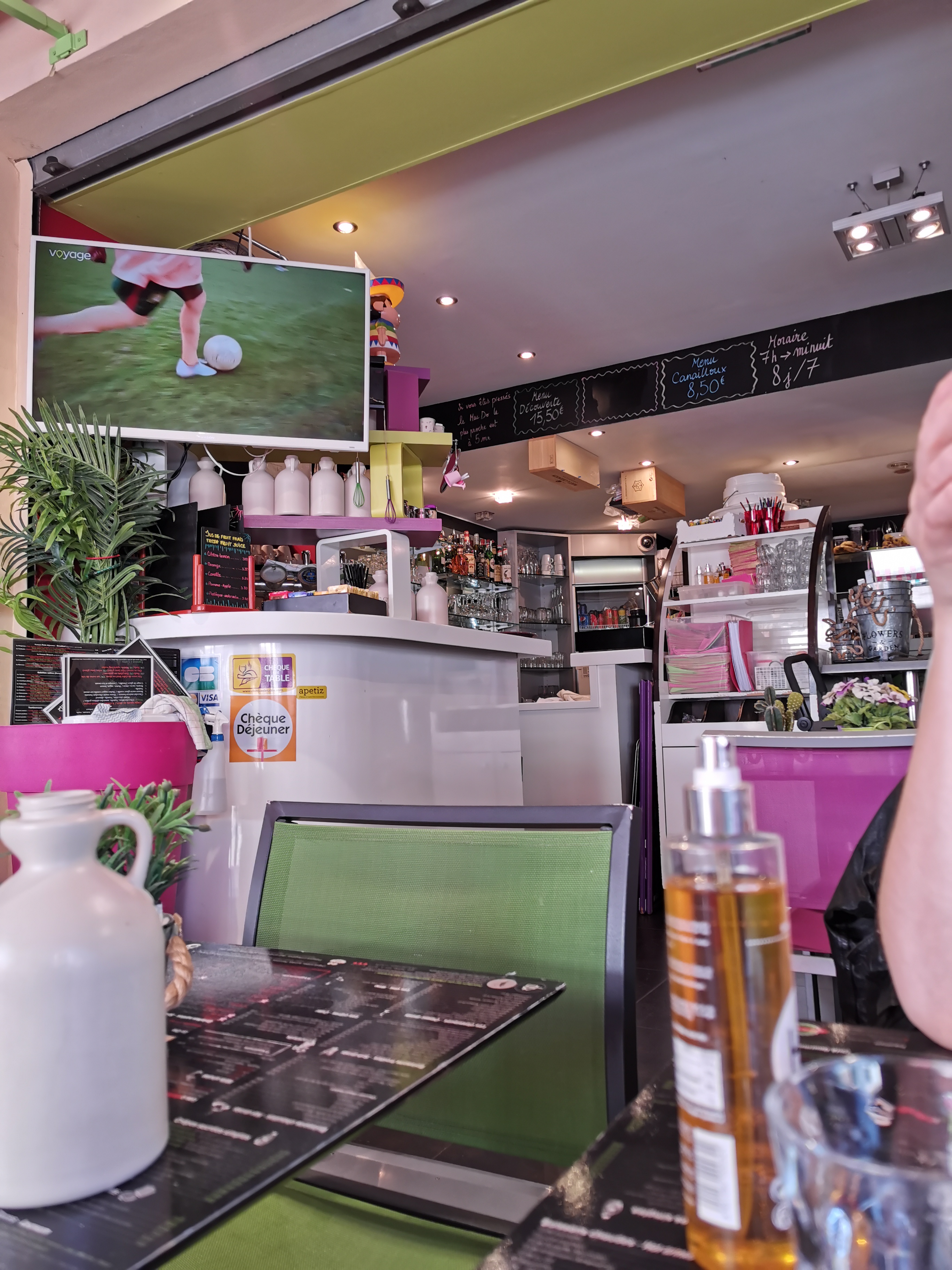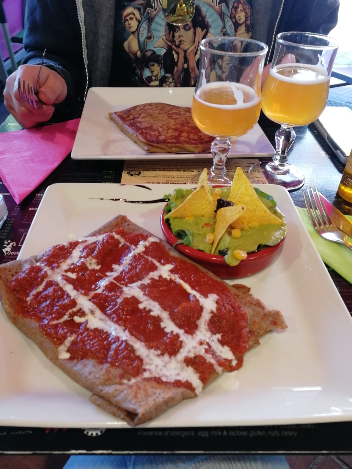 Lieux coloré qui donne envie de s'y attardé, accueil super, carte avec large choix et en plus c'est bon ! N'hésitez pas une seconde. Petit plus ils peuvent faire sans gluten ce qui à permis à ma fille qui est intolérante de manger une crêpe. Je recommande.