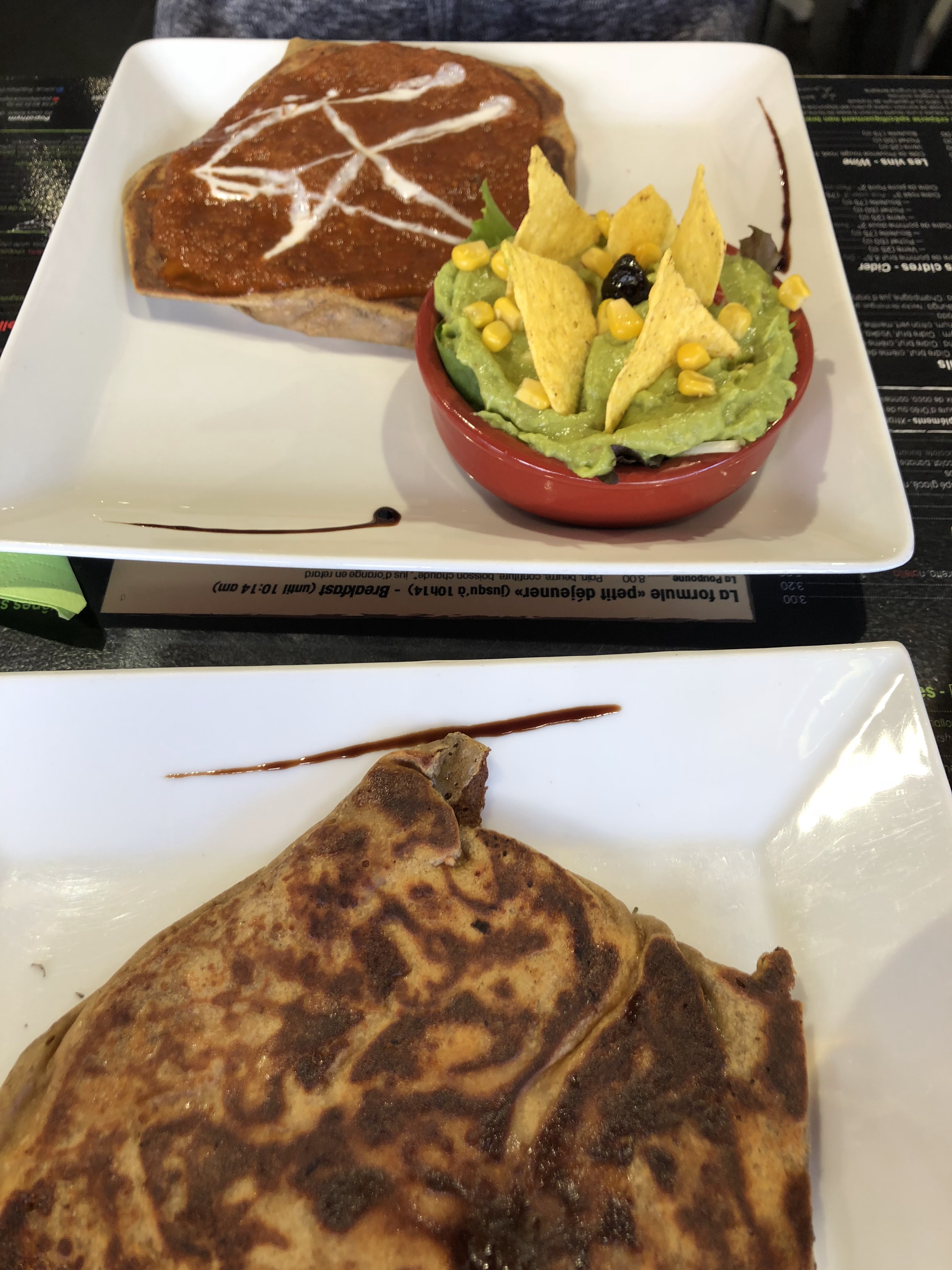 La crêpe a été meilleure que mes espérances. Les ingrédients m'ont paru frais et fait maison. Un excellent rapport qualité/prix. La carte est simple. Pour manger sur le pouce, c'est bien. Accueil agréable. Toilette propre. Le restaurant le dit lui-même : ni tout à fait breton, ni tout à fait Vegan, mais un mélange... Possibilité d'avoir des crêpes sans gluten au sarrasin...