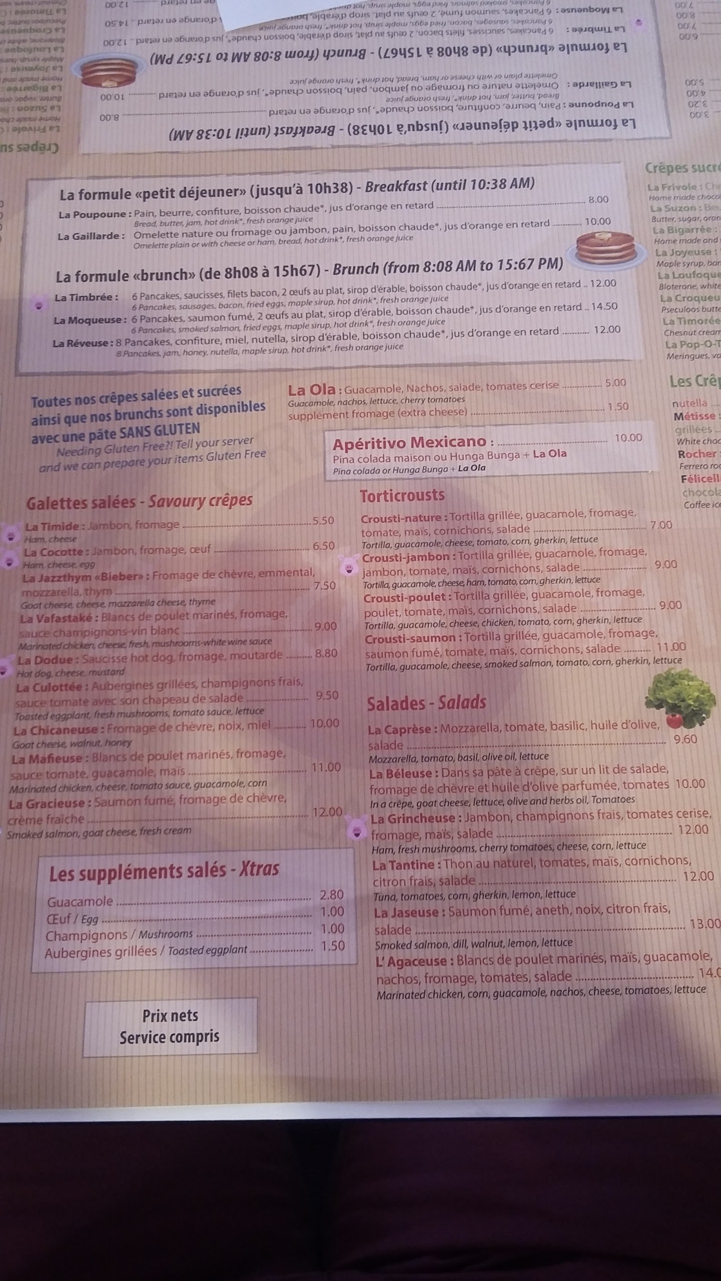Les crêpes sont très bonnes, les pancakes aussi. Le personnel est très sympathique et très efficace. La carte est vraiment grande, offrent un choix des plus varié. Mention spéciale aux quesadillas et à la citronnelle maison.