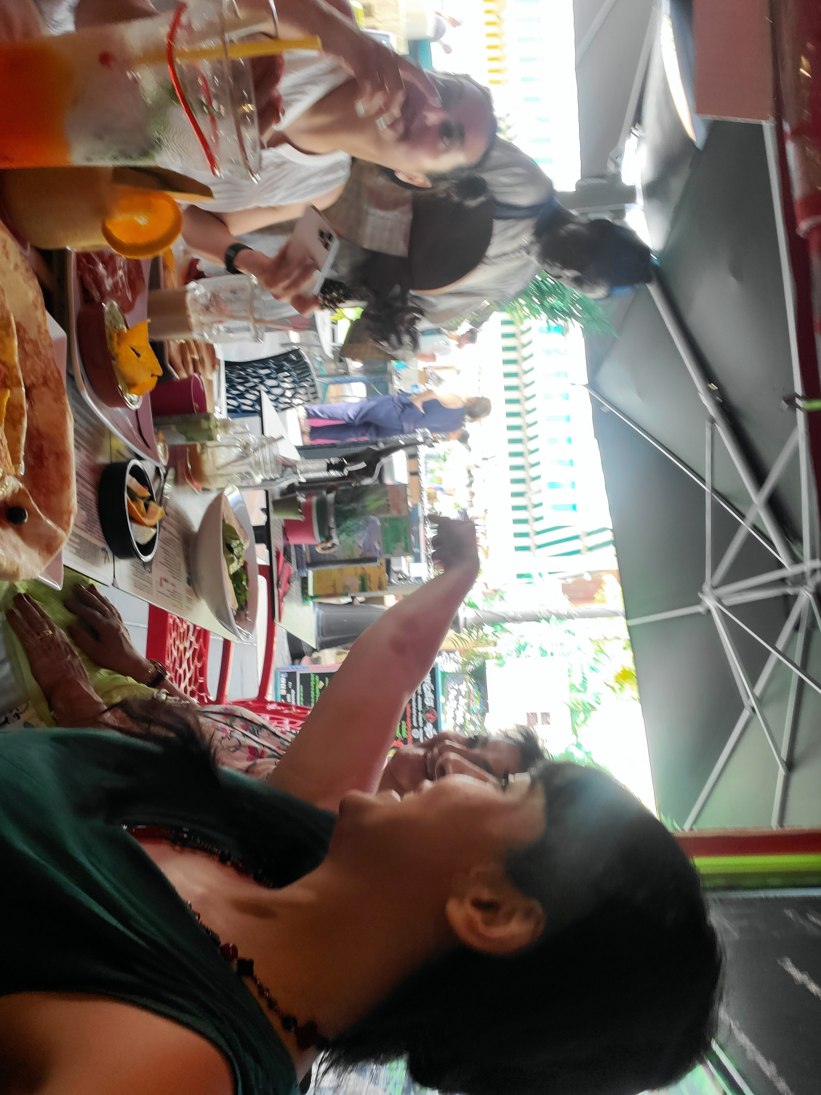 Nourriture très délicieuse. Les crêpes étaient un peu trop chères mais délicieuses. Les boissons étaient grandes et fortes (très bon rapport qualité/prix). L'ambiance était amusante et tropicale.