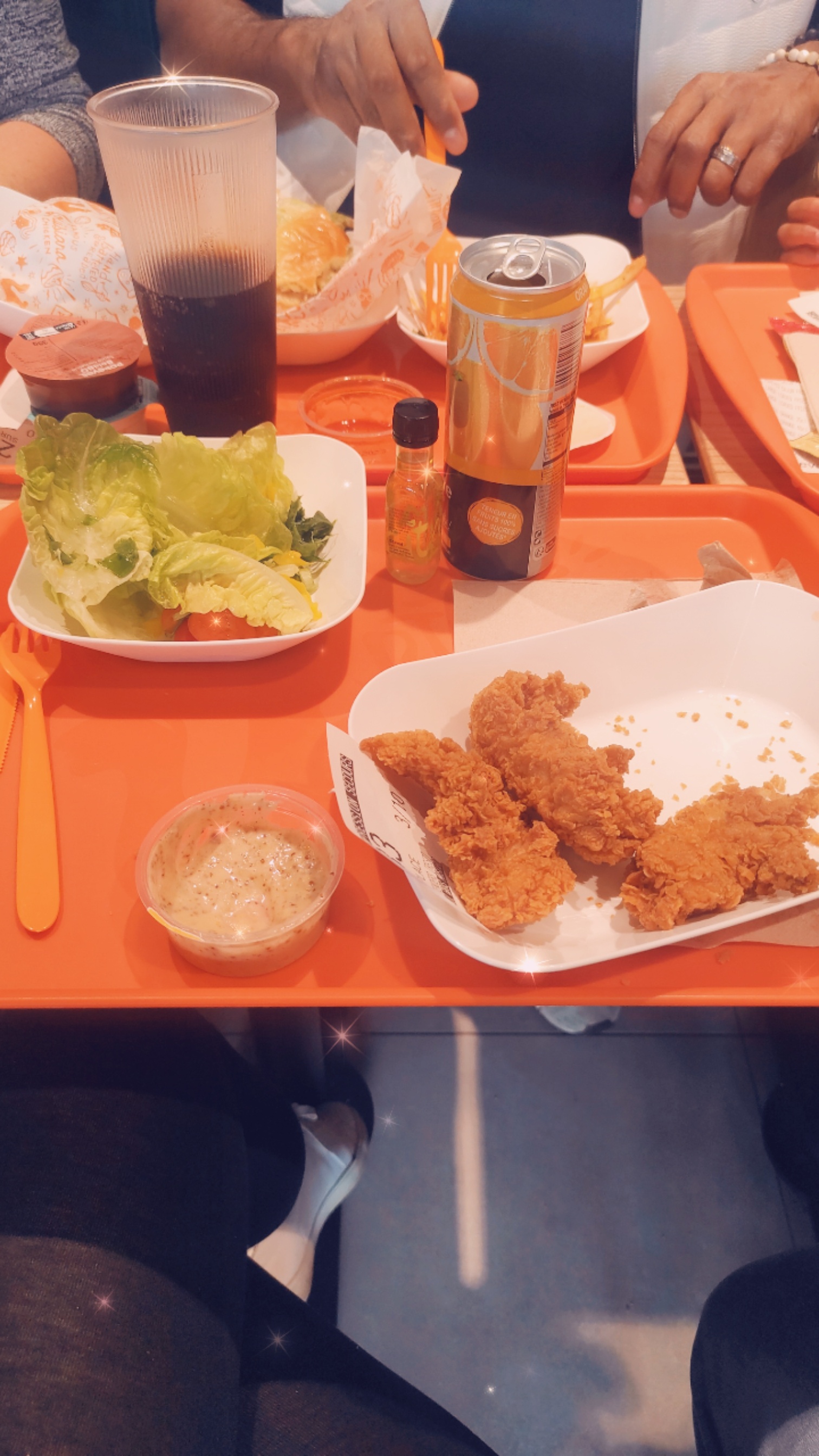 Avis mitigés... les personnes ayant pris les sandwiches de luxe baccon les ont trouvé très bien, le spicy bien assaisonné. Le menu enfant avec les petits nuggets qui sont de vrais filets très bon aussi. Les frites super bonnes. Les tenders aussi RAS. Par contre au niveau des pièces de poulets signature, c'est une déception... Bon point la panure est croustillante et agréable en bouche mais niveau épices, c'est mon goût personnel mais les épices cajun je n'ai pas aimé. Les pièces très grosses, et un haut de cuisse ce n'est vraiment pas pratique à manger, de plus sous la panure, la peau est molle et très grasse c'est écœurant... et j'ai trouvé un peu élève le tarif également... Le personnel tres agreable et pro, un monsieur a nettoye la table en nous voyant arriver. Et le service a table rapide moins de 10 minutes, pas d'oubli dans la commande ni d'erreur. Mais donc avis partagés....
