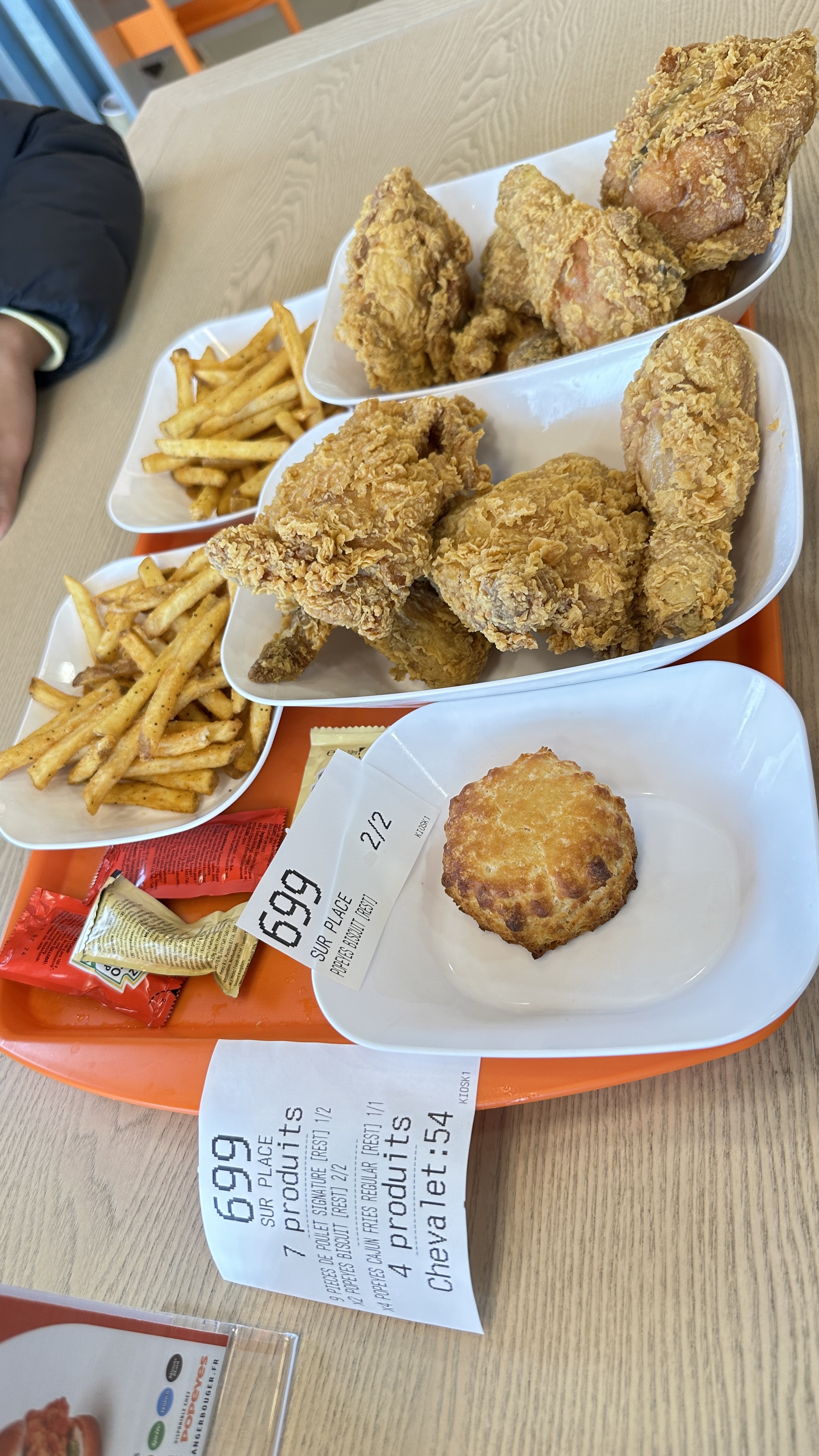 Très sincèrement j'ai beaucoup aimé. Le service fait avec le sourire (de Farida), le poulet et les frites étaient bons et surtout bien chaud ce qui est très agréable surtout quand il fait froid dehors. Seul bémol : il n'y a pas de burger avec des filet de poulet non pané et le café allongé n'est pas assez long. Mais bon je pinaille 😉