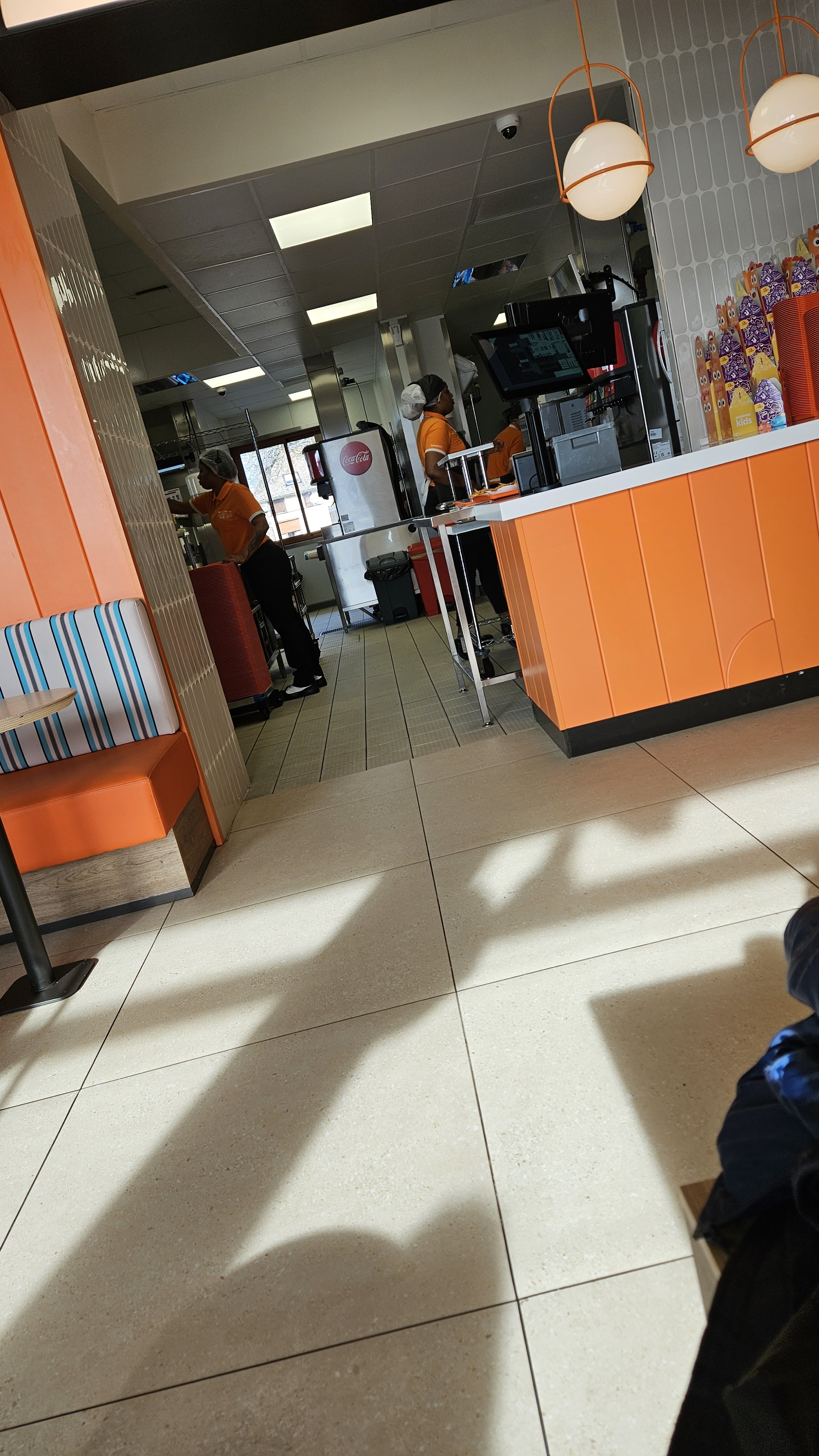 C’est une première pour moi, j’y suis aller avec mon papa au alentours des 14h30 Il y avais 2 clients sur places et nous avons attendu plus de 20 minutes pour 2 menus et 1 milkshake, qui d’ailleurs pour se faire pardonné, m’a été donner en grand format, mais seulement le gobelet, là quantité est la même que le petit format L’endroit reste relativement propre et agréable, cependant j’ai remarquer que certaines tables et sièges n’étaient pas nettoyés, alors que, comme dit au dessus, le Fast-Food était quasi vide. Dommage que ce soit pareil pour le personnel, le petit jeune qui m’a servi était très gentil et souriant, cependant les autres beaucoup moins… il y a eu une petite altercation entre un livreur et un des employé C’est dommage comme première impression, nous ne savons pas si nous allons revenir.