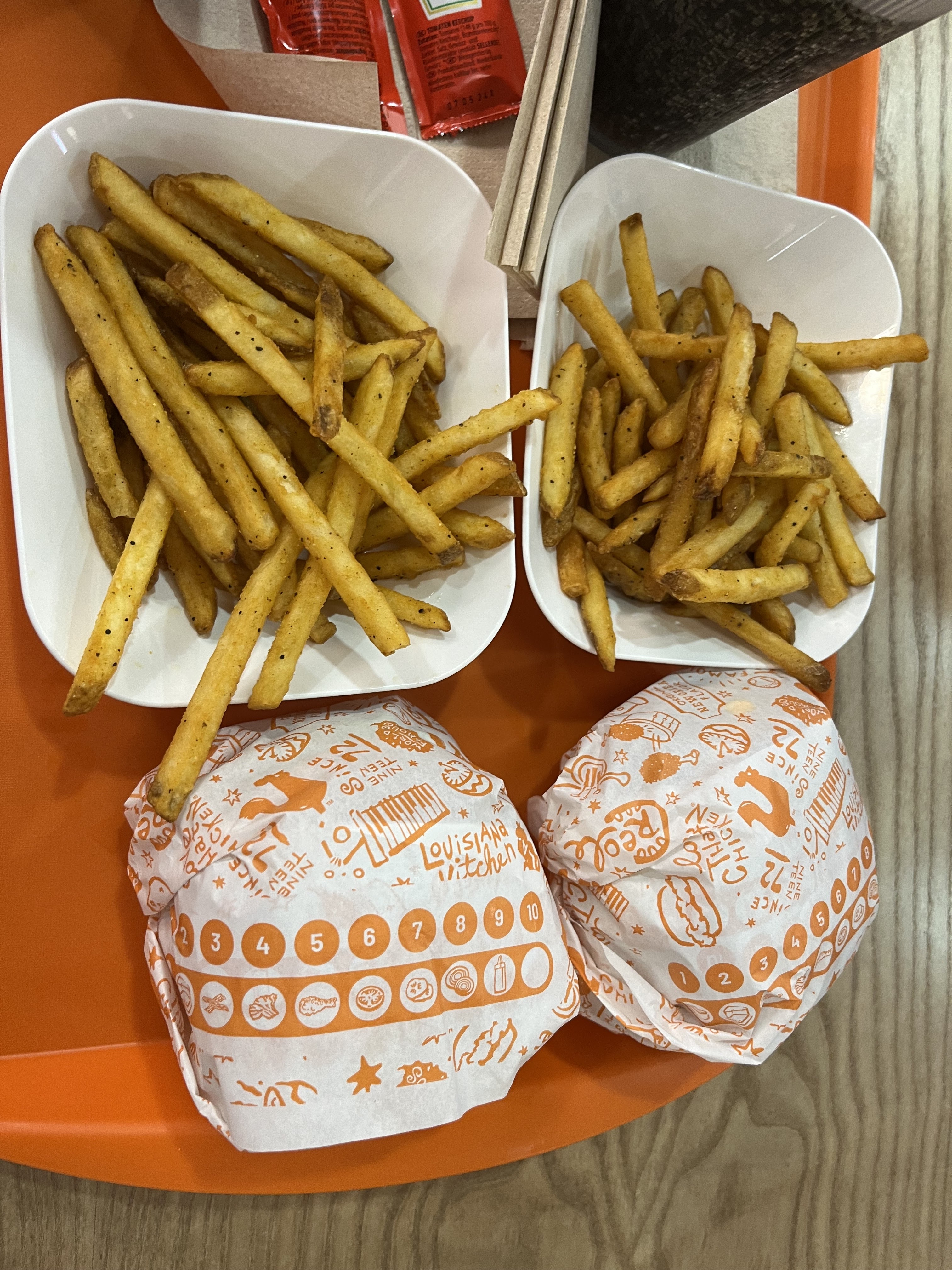 Une déception, une attente interminable, des bonnes frites ! ➕ Énorme morceaux de poulets, excellente frites, le restaurant est charmant, un très grand parking. ➖ L'équipe du drive est extrêmement lente malgré l'ouverture cela ne reste en aucun cas normal d'attendre 1h30 pour deux menus et un menu enfant. Déçu du goût du burger. Glace complètement fondu alors que le trajet n'était que de 10 minutes. (Mon avis personnel sur le poulet et que je n'aimais pas trop l'épice ou le goût en lui-même du poulet mais cela plaît à d'autres). Attendez quelques semaines avant d'aller goûter cela ne vaut pas le coup d'attendre autant de temps. 31euros pour deux menus adultes et un menu enfant.