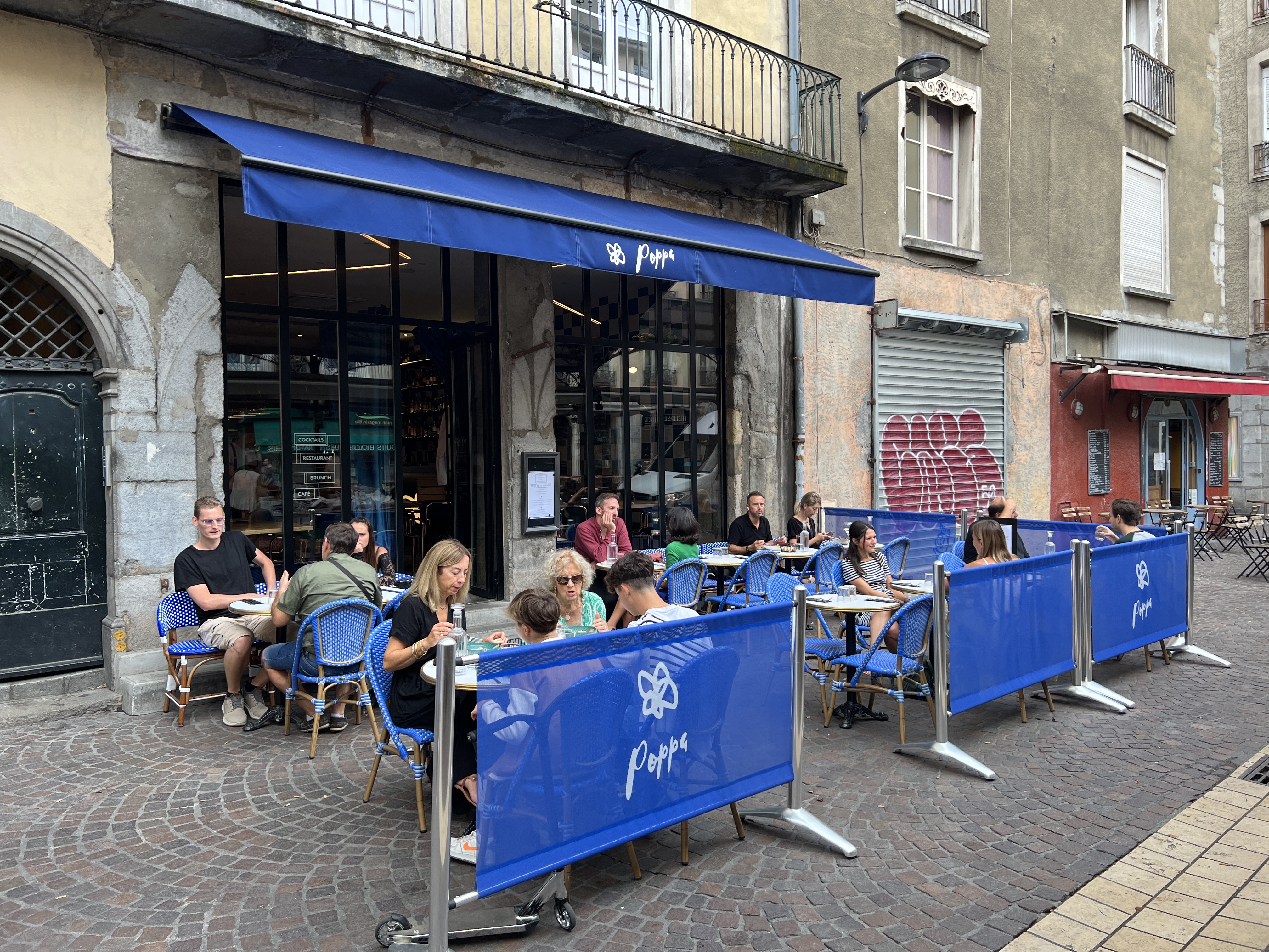 Une de nos adresses préférés sur Grenoble, pour se retrouver entre amis, bruncher le dimanche en famille ou savourer un excellent repas en semaine. Le tout dans un bel cadre, sur une place mythique de Grenoble, avec le plus grand soin apporté au moindre détail: accueil, meubles, déco, service, vaisselle, les plats, la carte toujours originale, mariage harmonieux des saveurs, dressage des assiettes, comme des oeuvres d’art…bref, vous l’aurez compris - tout est excellent! Cette semaine nous avons prix un formule du jour et nous avons été agréablement surpris, car ces mélanges de saveurs fallait les rechercher: espuma de mozarella, mousse aux capres, mousseline chou-fleur vanille, pêche au sirop de CBD… Je vous recommande de reserver, victime de son succès, le Poppa est souvent complet 😉