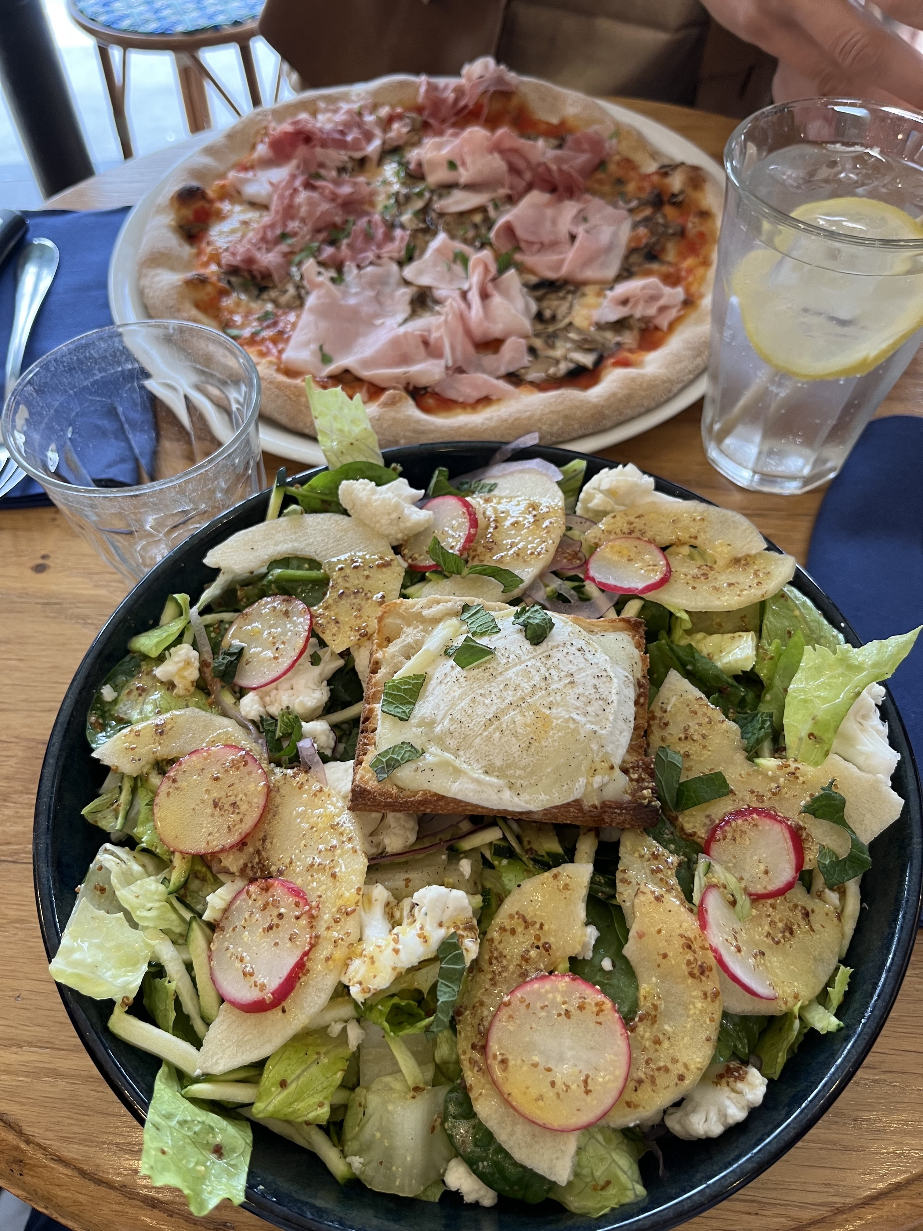 J'y suis allé dans l'après-midi au mois de juillet. Le personnel est très sympa et attentif à nos besoins. Niveau nourriture, des pizzas avec des saveurs différentes de ce que l'on retrouve en pizzaria. Pour ma part j'ai tester celle avec du miel, vraiment bonne, même si je préfère les pâtes plus 'napolitaines'. La salade césar est bien servie et bonne, avec ses petits choux fleur. N'hésitez pas à y passer, c'est un chouette endroit.