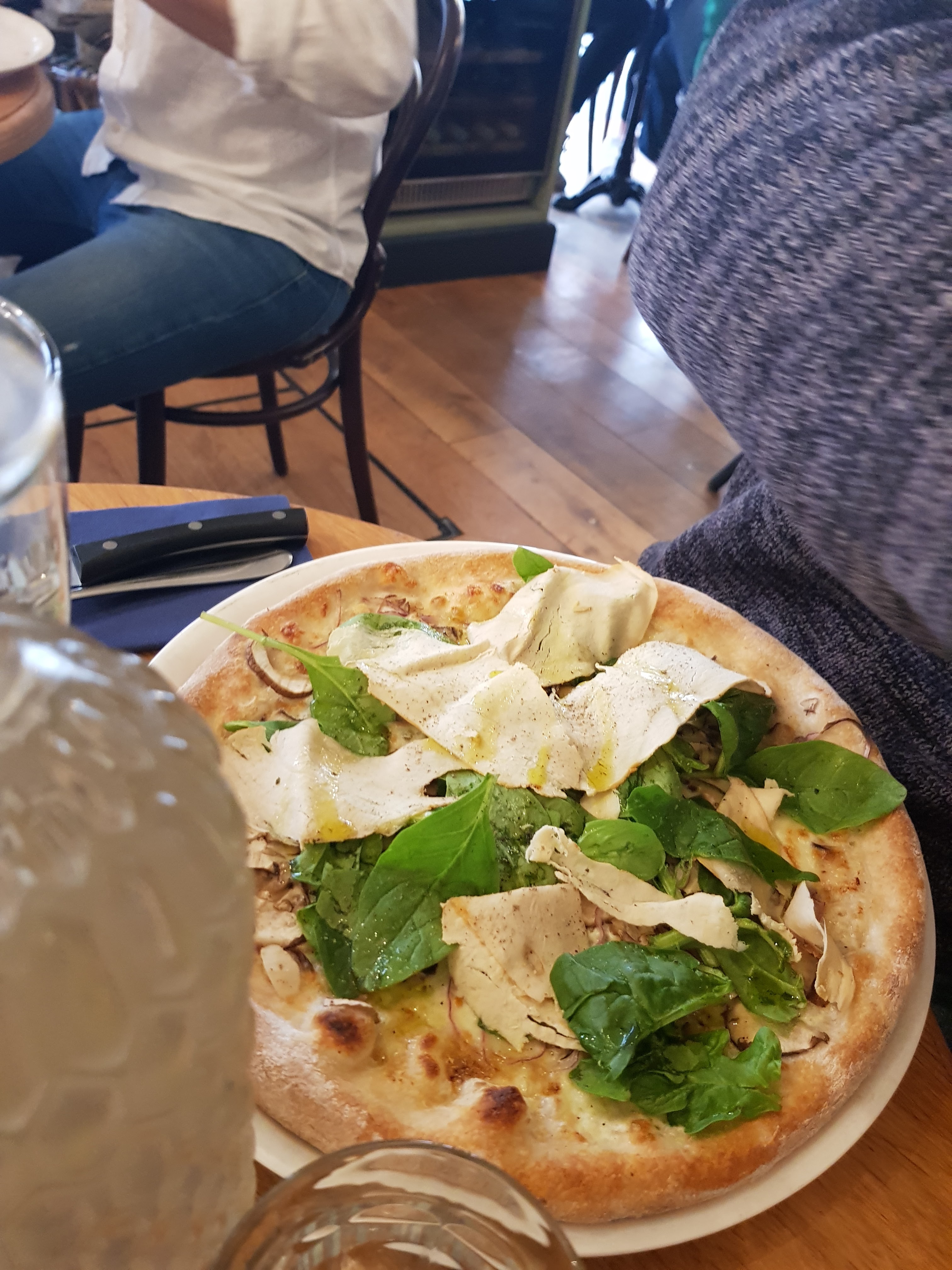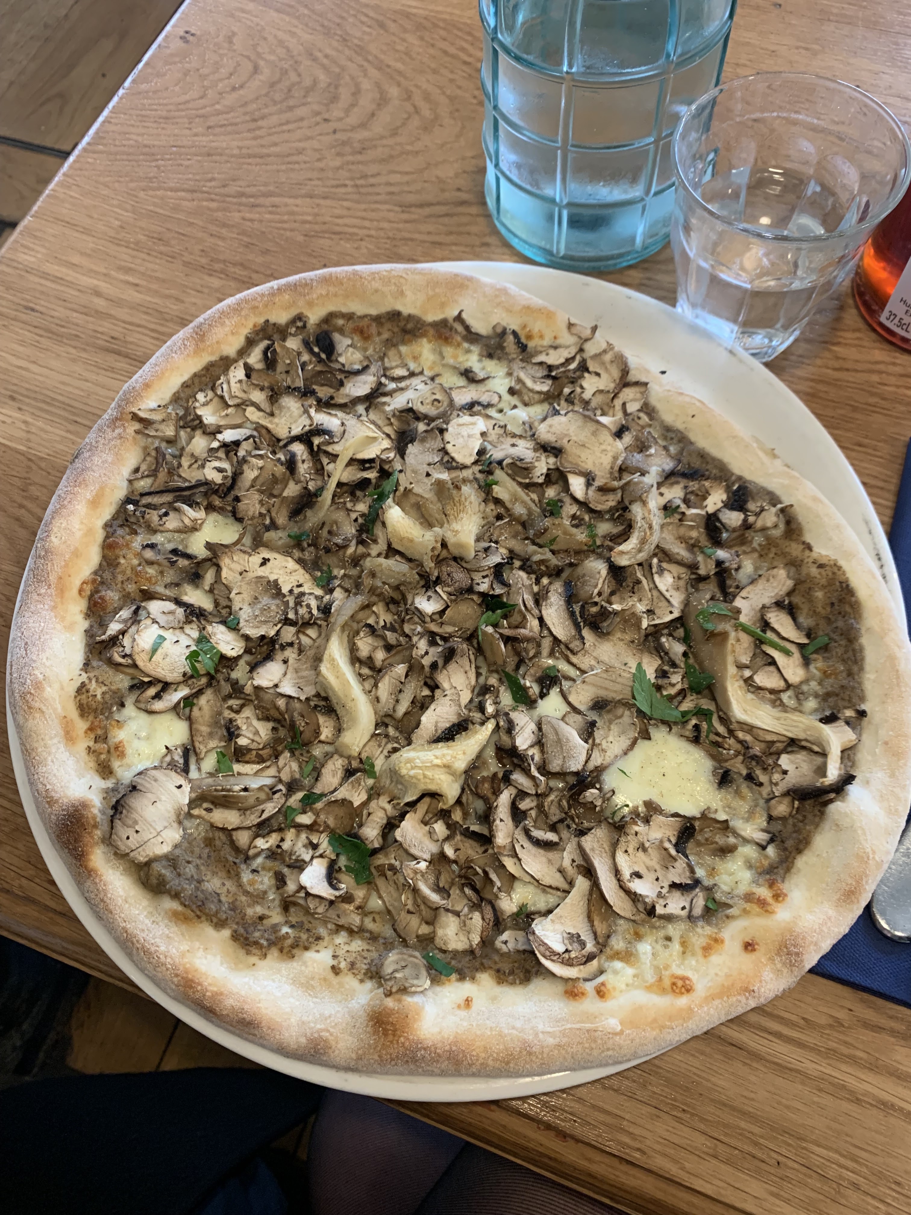 Très bonne pizza, la base crème fraîche isigny et graines de moutarde est excellente