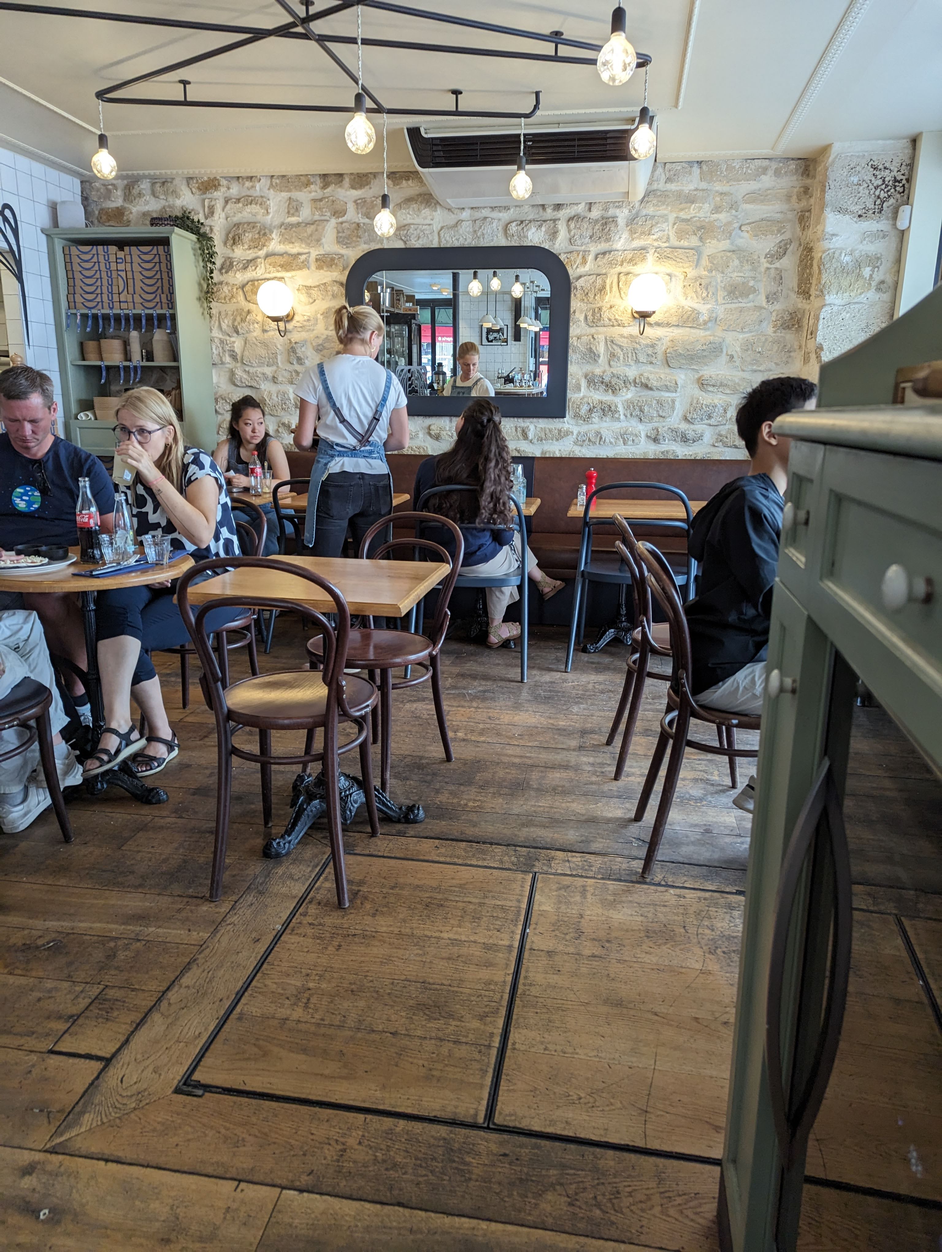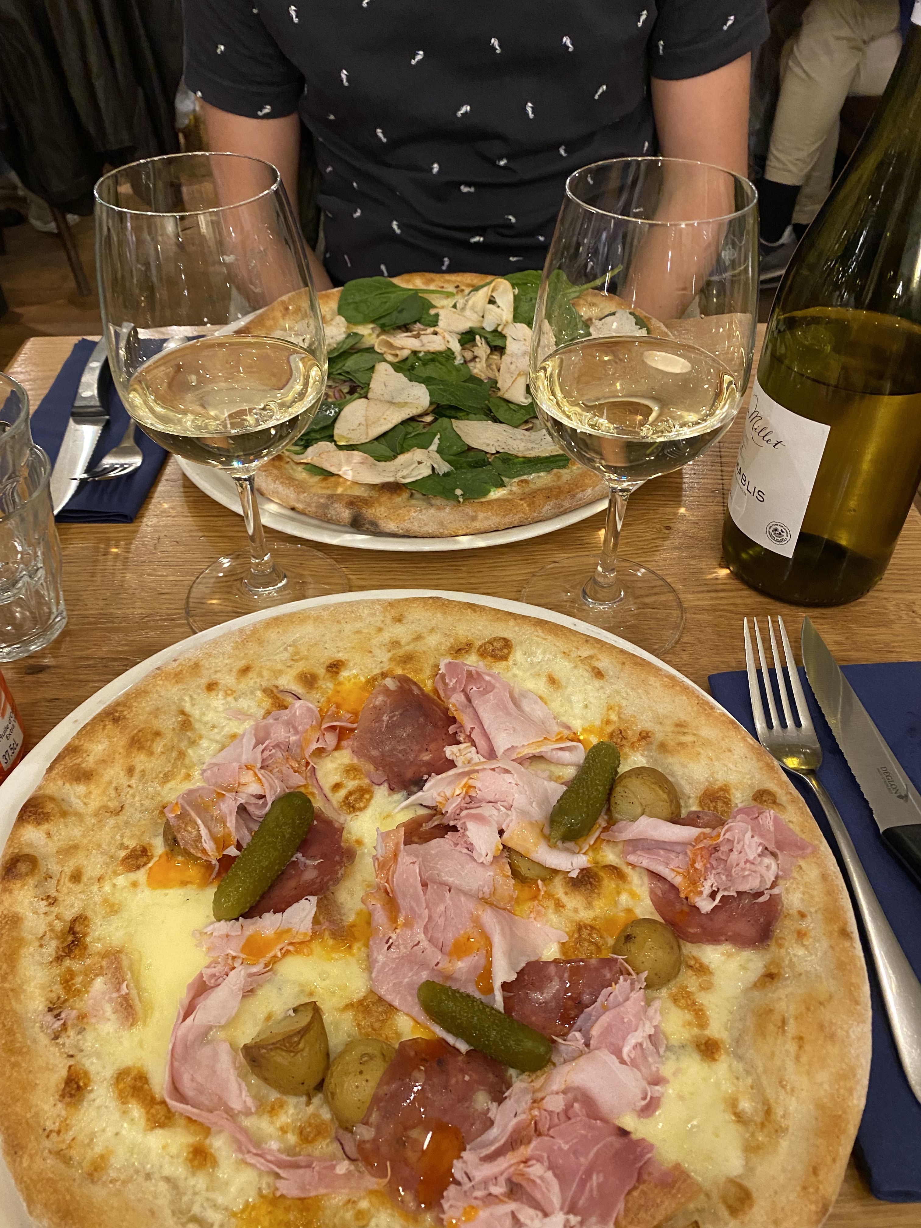 Ambiance agréable et décoration soignée. Accueil chaleureux, belles sélection de vins aux verres à prix abordable. Bémol : la pâte des pizzas est très bonne, les ingrédients de qualité mais le tout manque de saveur ! Peut-être lié au fait que nous avons pris des pizzas base crème fraîche. Pour finir le repas, nous avons commandé un spiritueux liqueur menthe pastille (à la carte) et nous avons eu un pastis au sirop de menthe… erreur de compréhension, néanmoins original !!!!