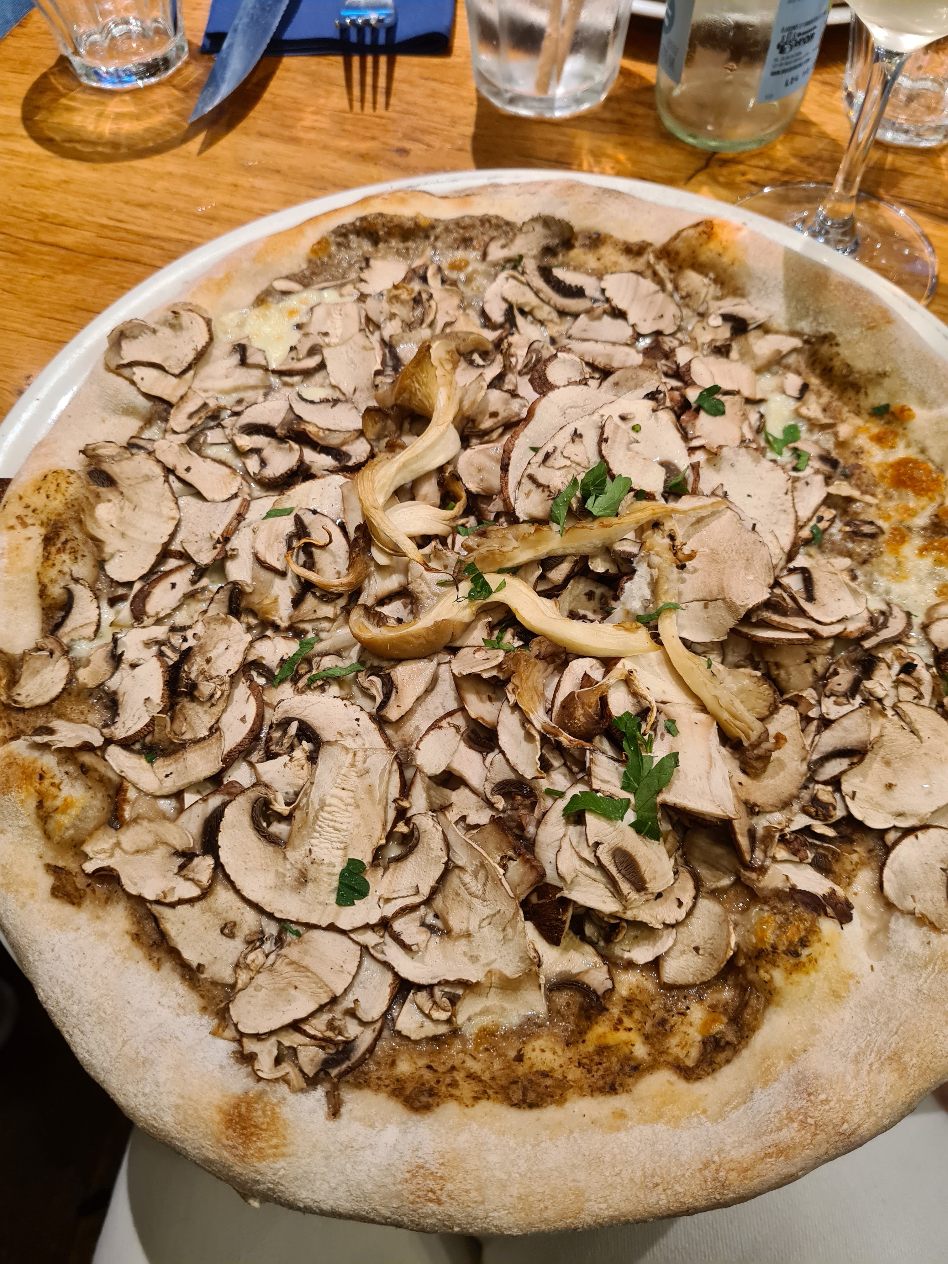 Pizza incroyables, croustillantes et légères, celle au champignons permet de se faire plaisir gustativement ET moralement, en respectant hygiène de vie et agrément. L'huile d'olive au piment d'Espelette est originale et délicieuse. Les salades sont monumentales (bon, ok, beaucoup de salade, croquante à souhait). Les desserts sont du même acabit. Le personnel est d'une gentillesse et d'une prévenance très agréable. Le cadre est très agréable, lui aussi.
