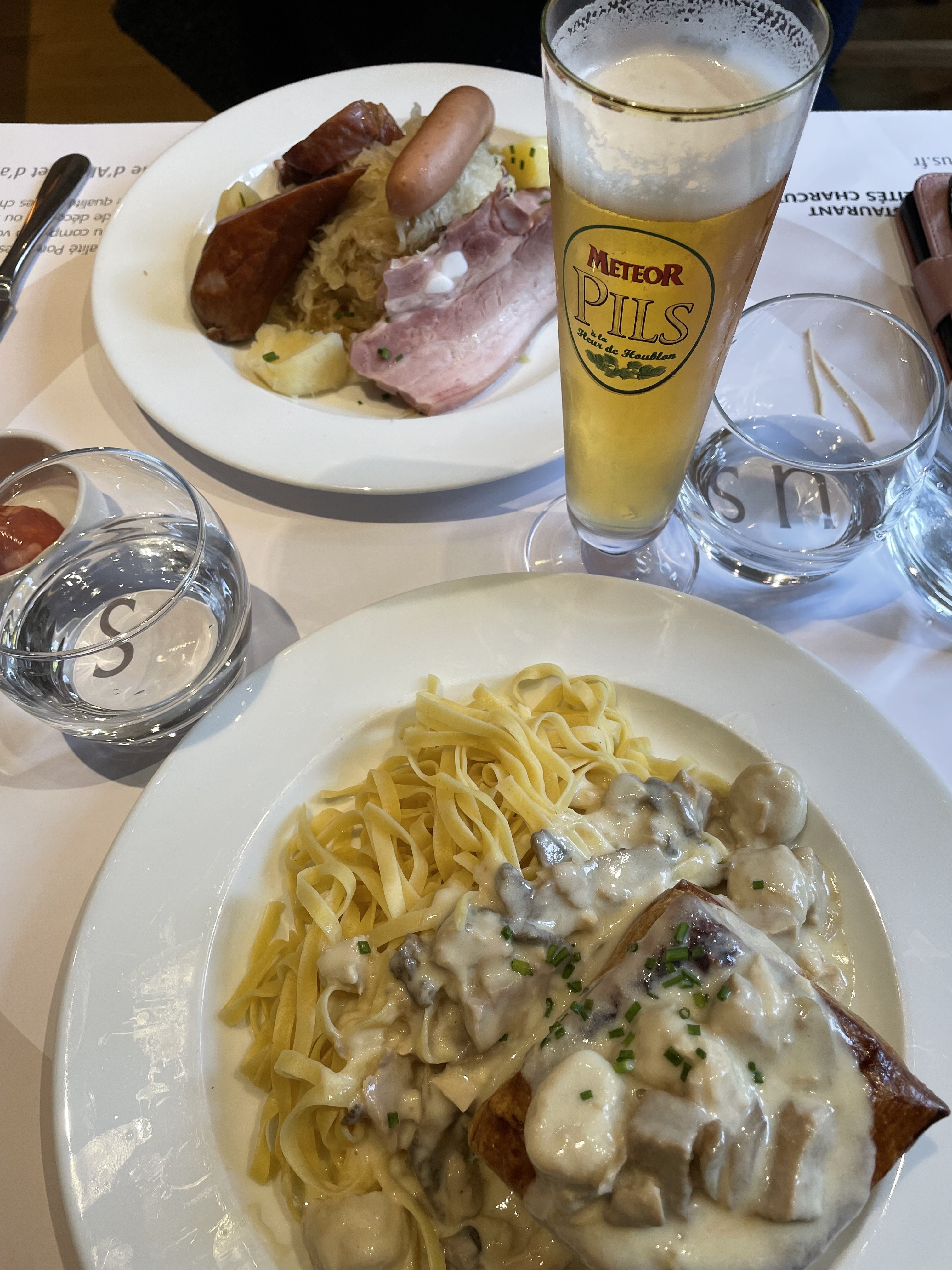 La choucroute 100% saucisse (7 sortes différentes si mes souvenirs sont bons) est idéale pour les gens comme moi qui ont du mal avec les viandes grasses et salées. Prix abordable et en + passeport gourmand (-50%). À refaire à la période de noël pour les spécialités à la truffe..